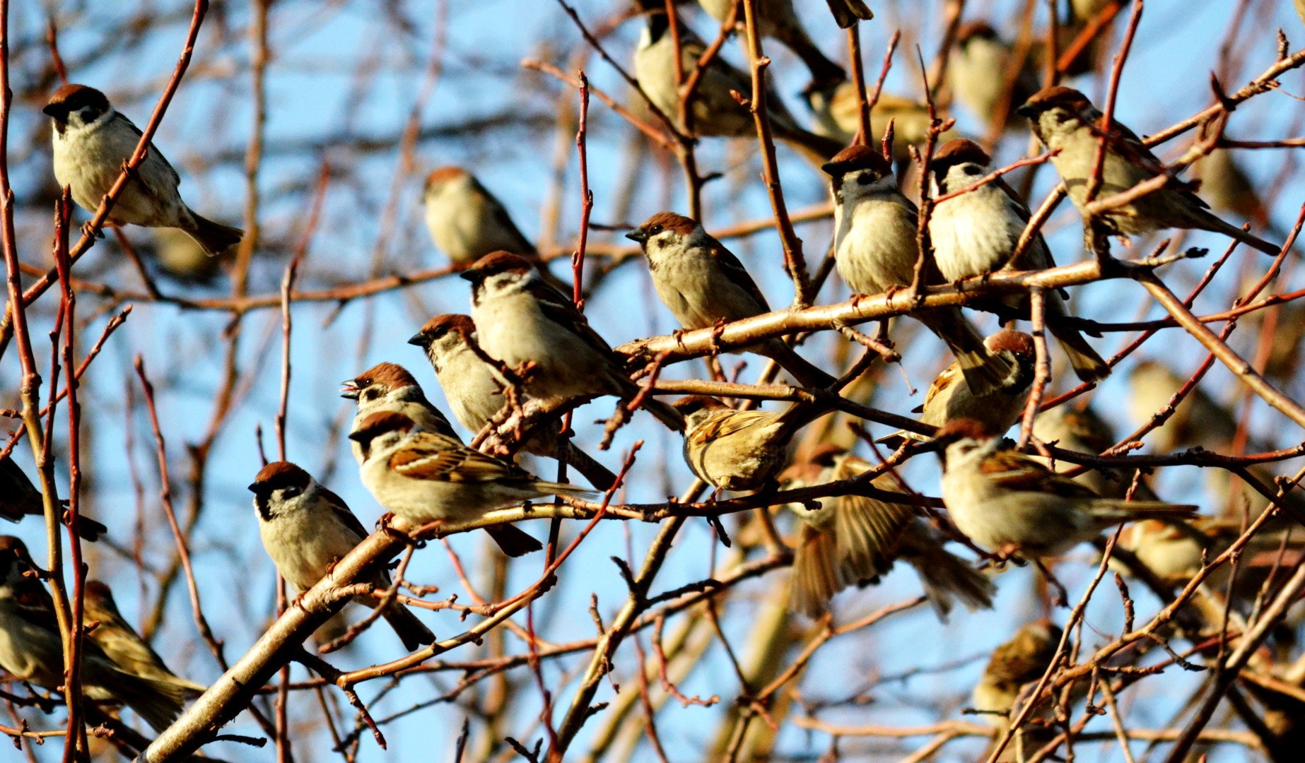 Воробьи весной