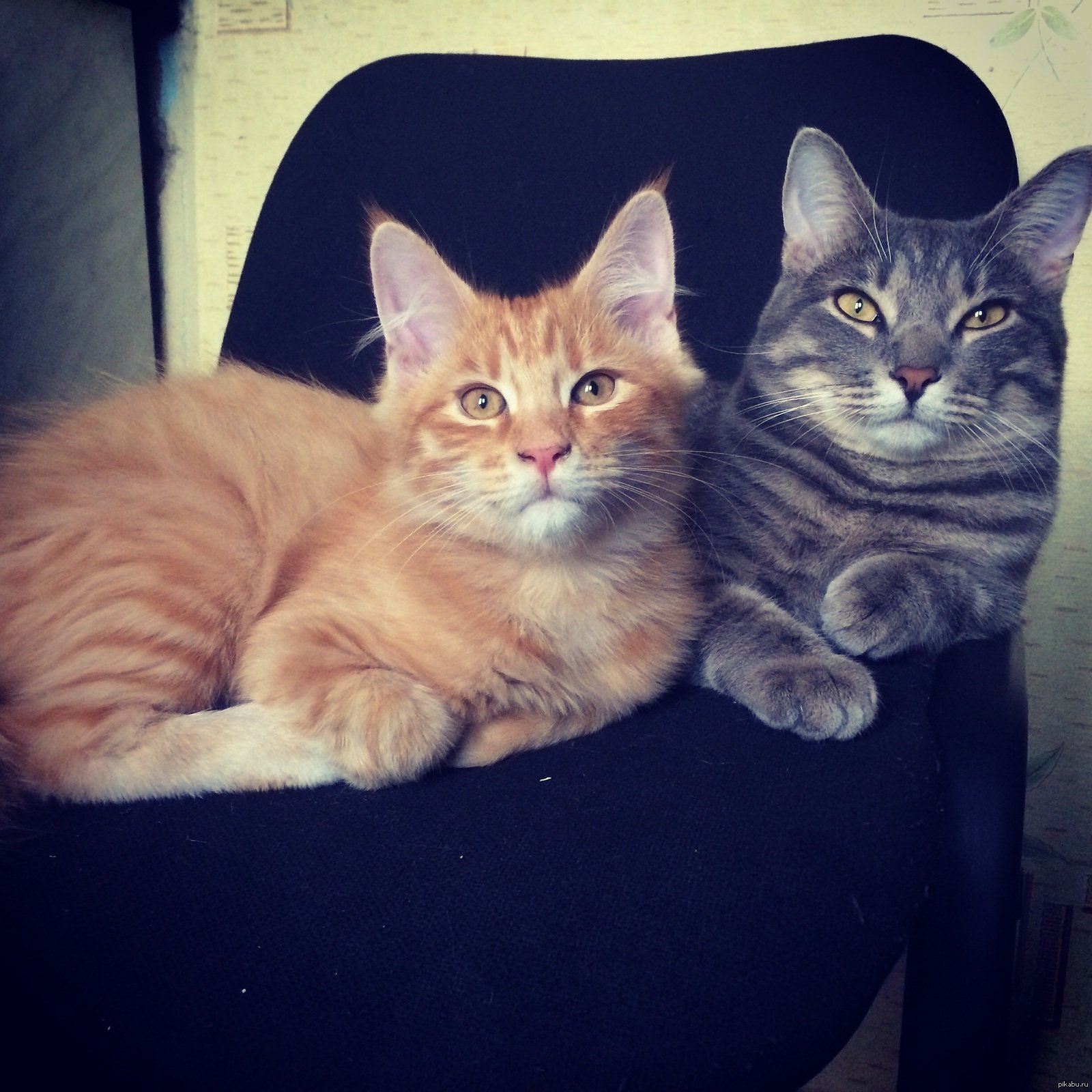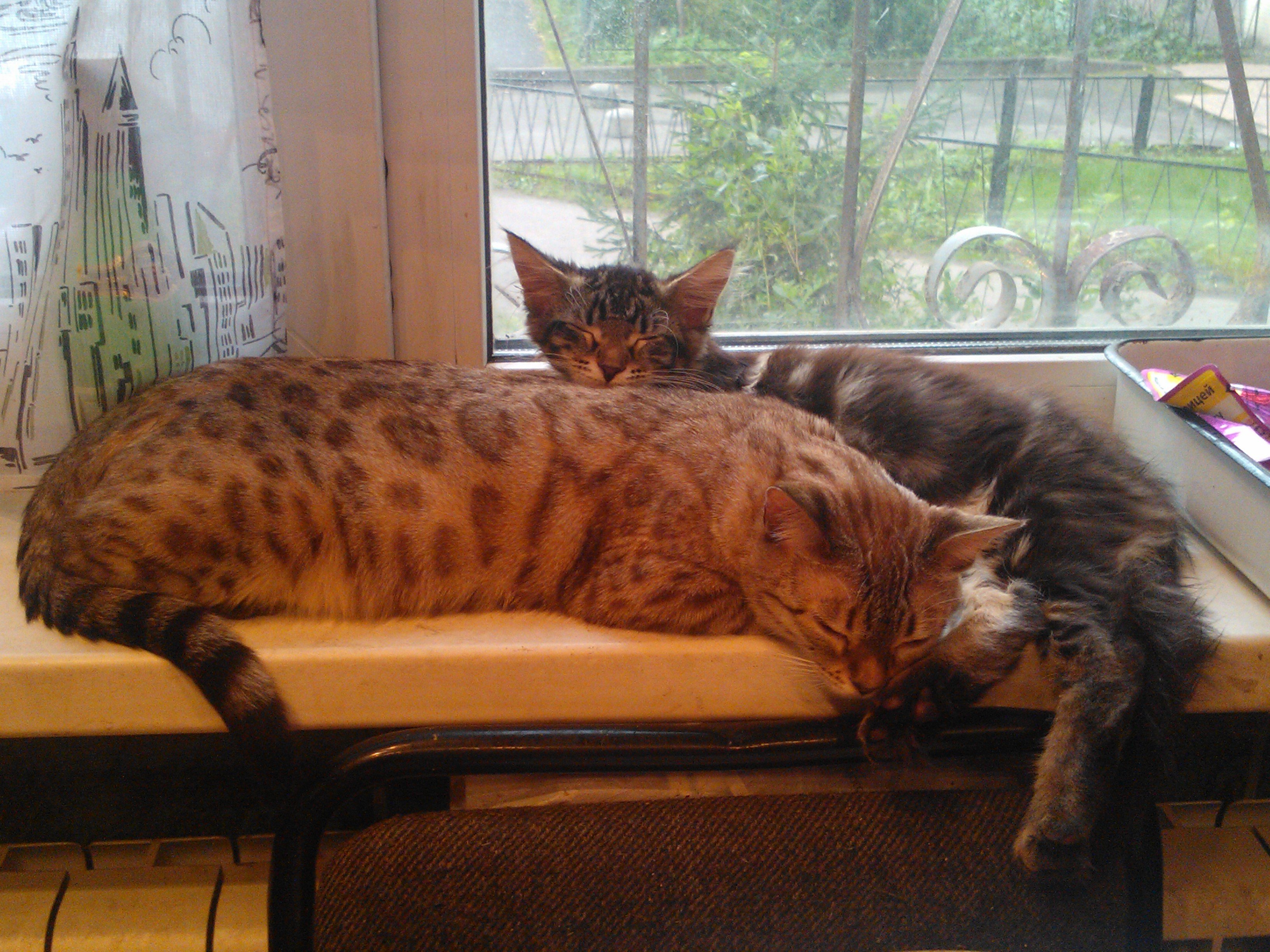 Мэйн кун и обычная кошка
