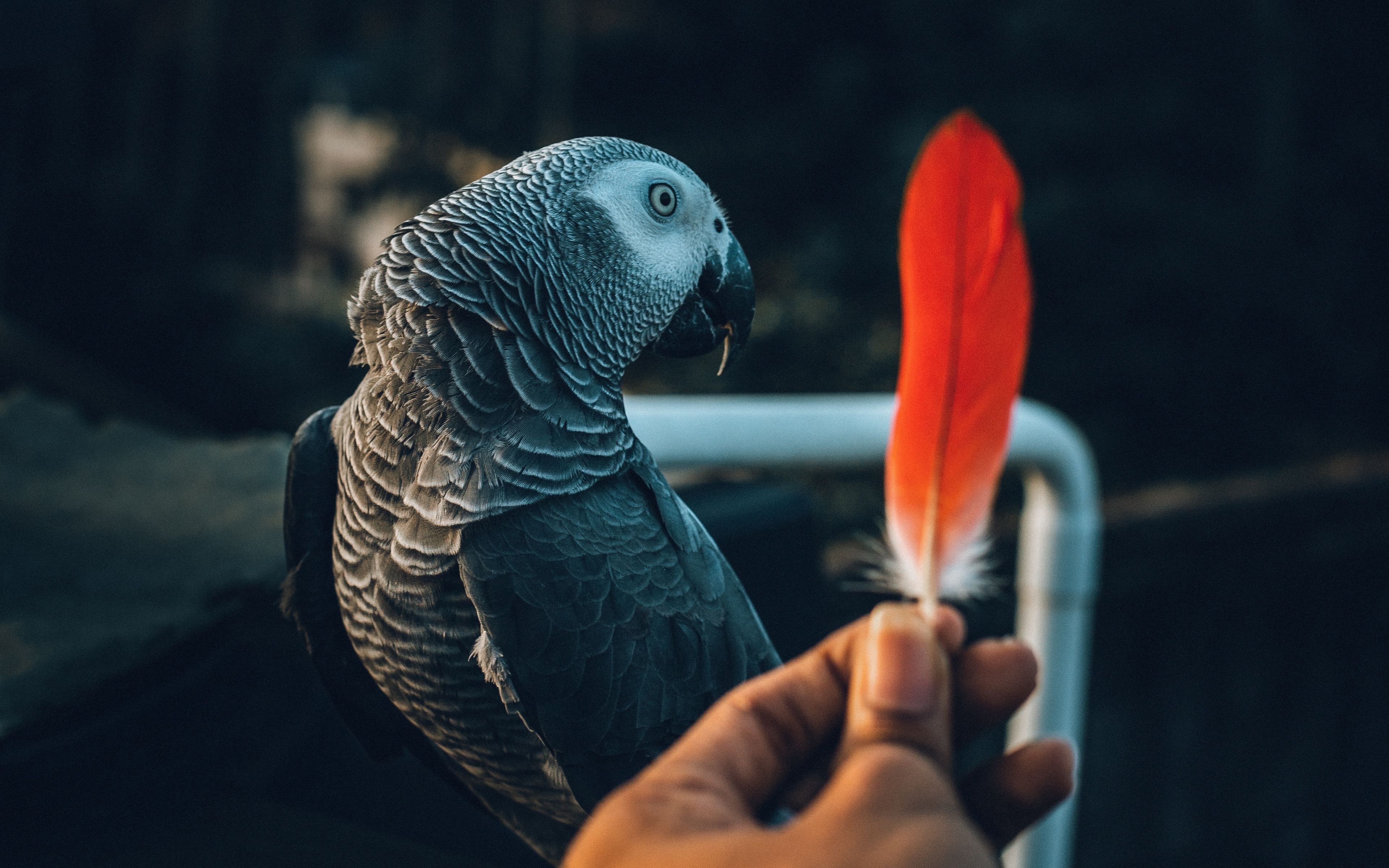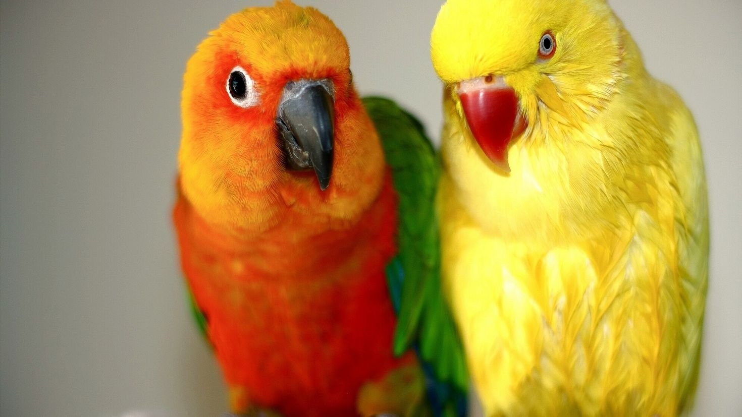 Серые оранжевые попугаи