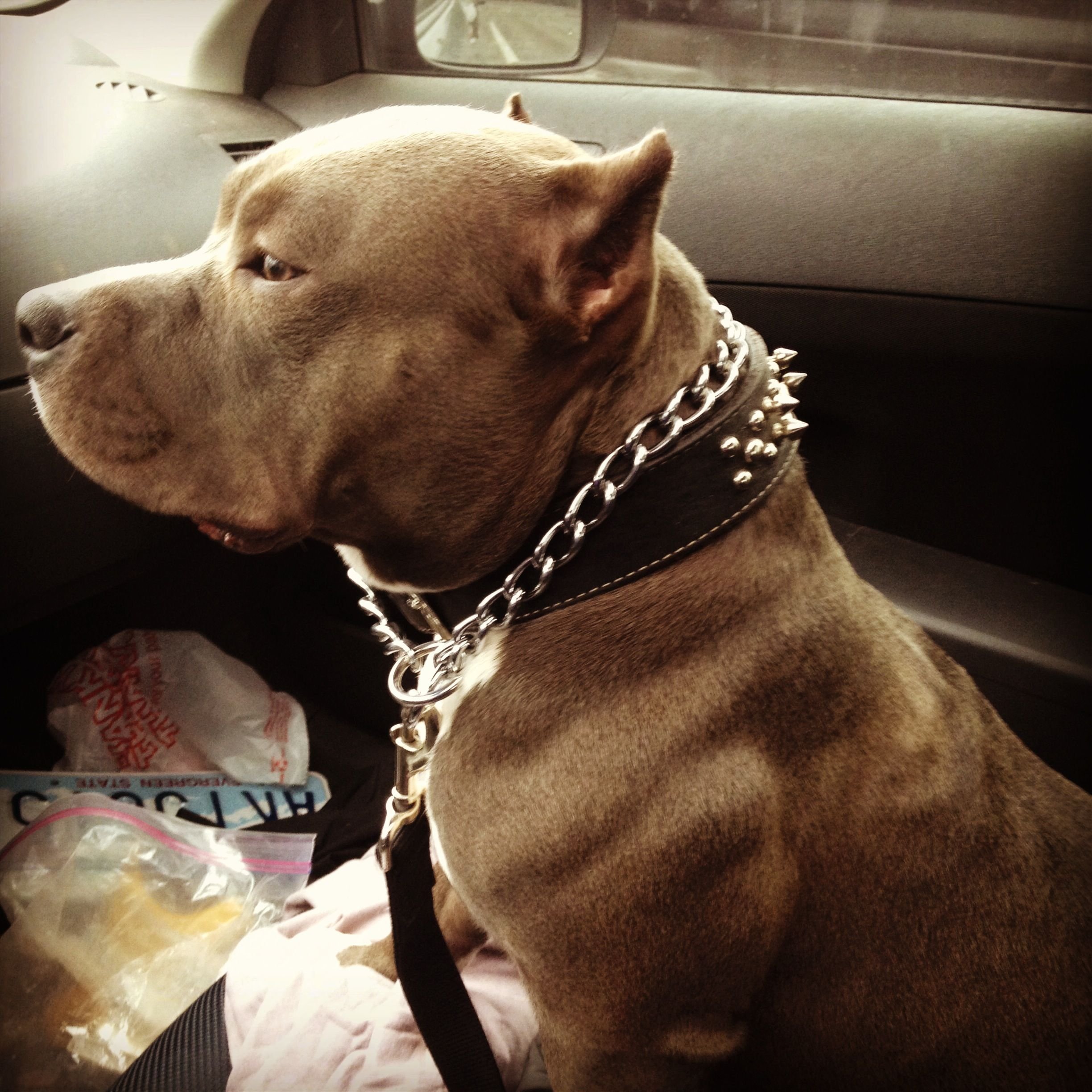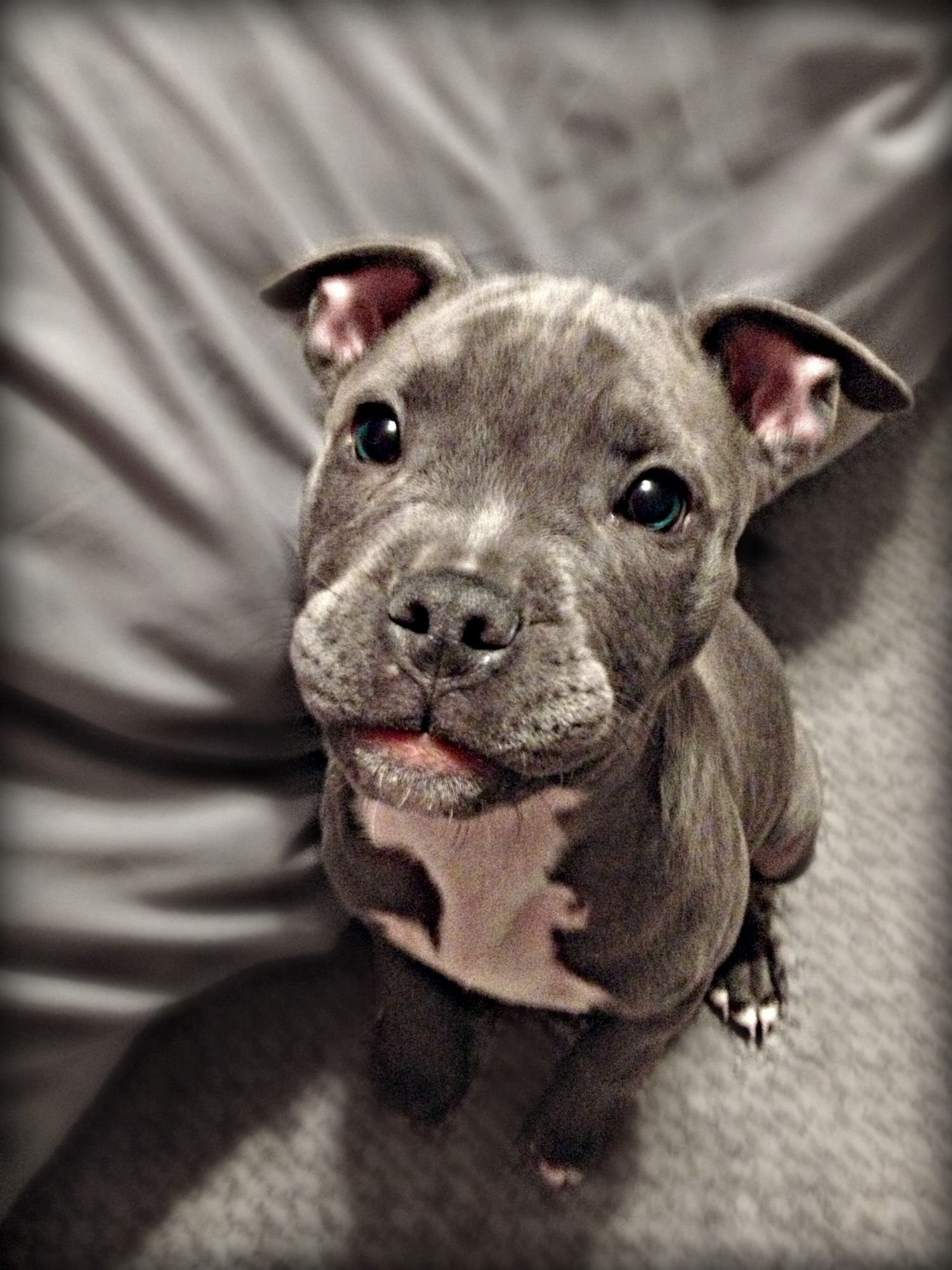 Стаффордширский терьер серый с голубыми глазами
