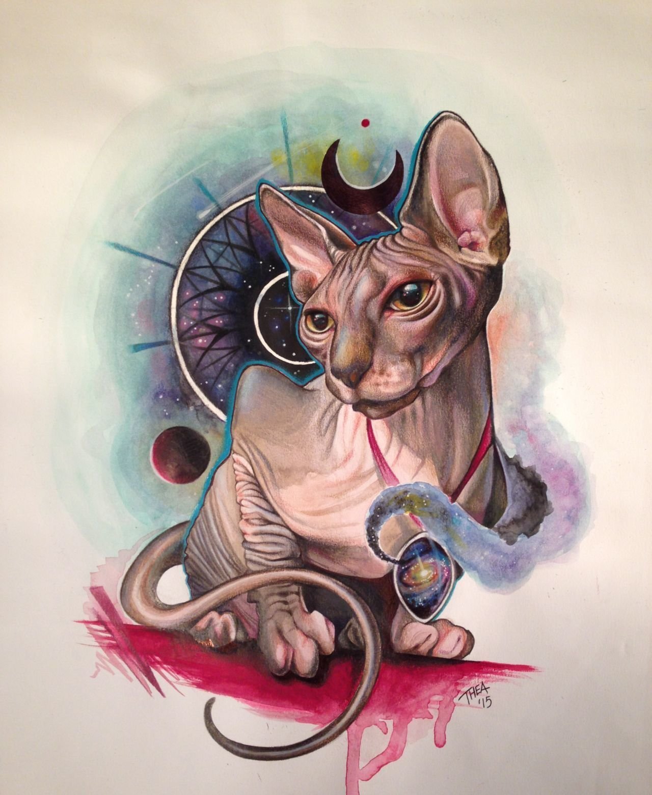 Ориентальная кошка акварель