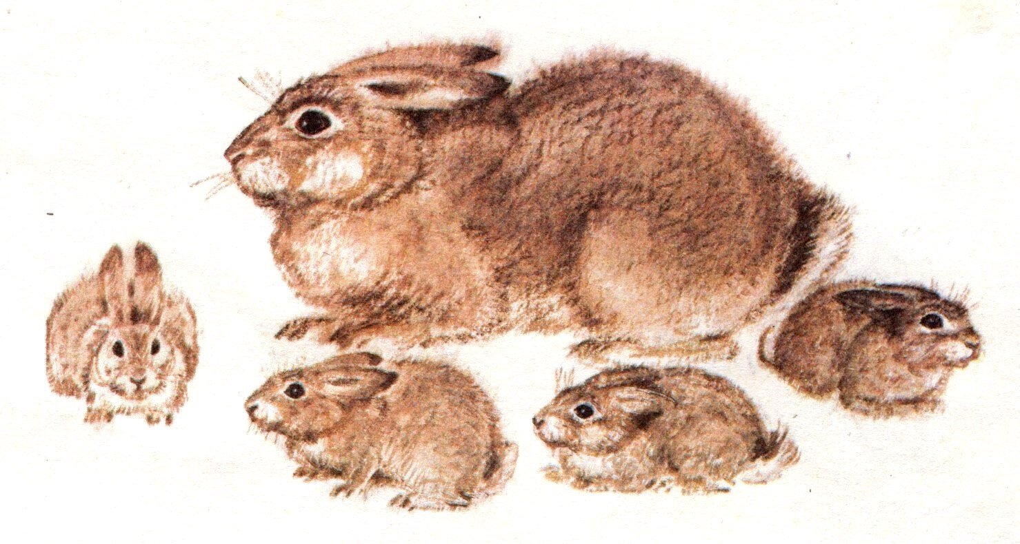 Заяц Беляк с зайчатами