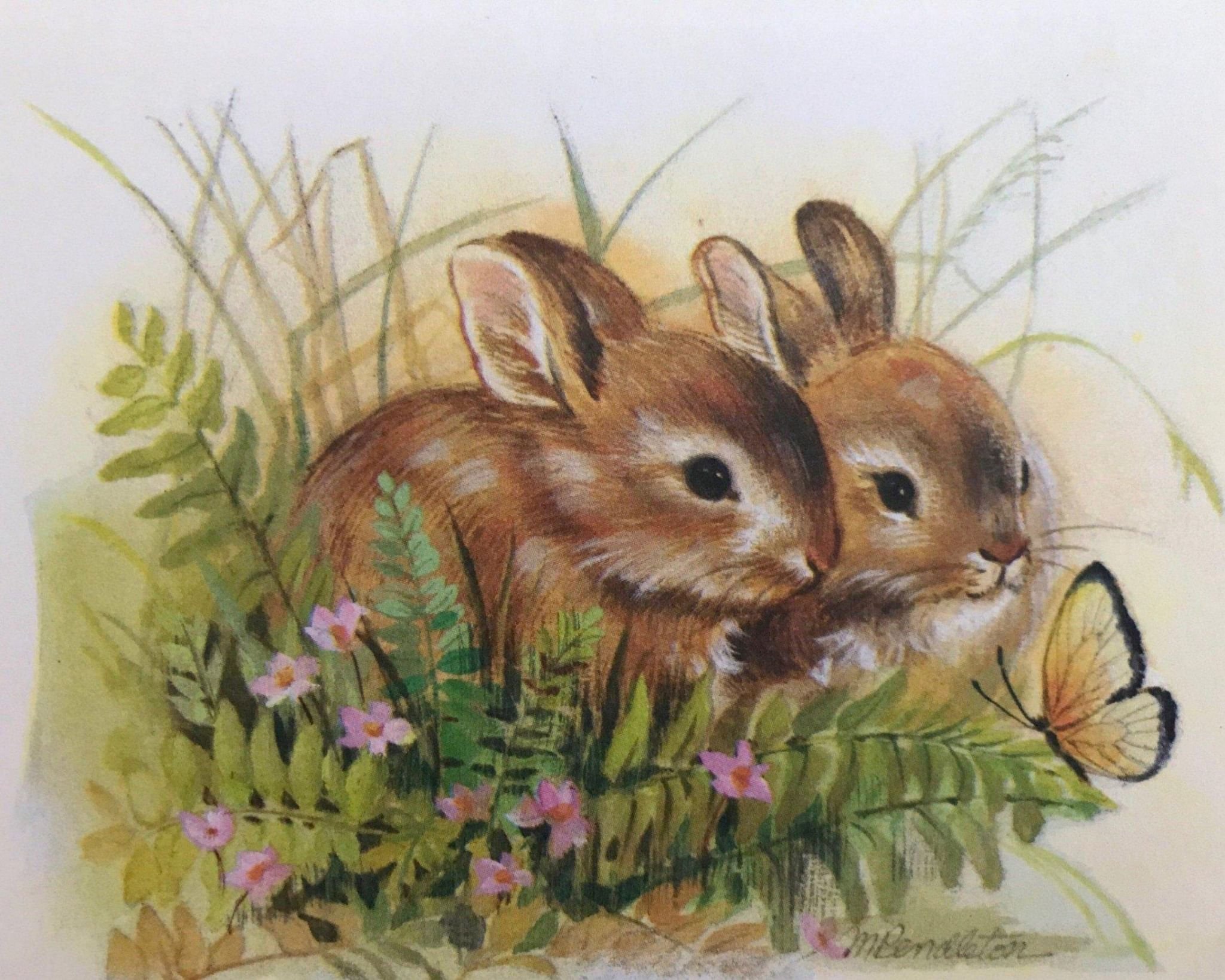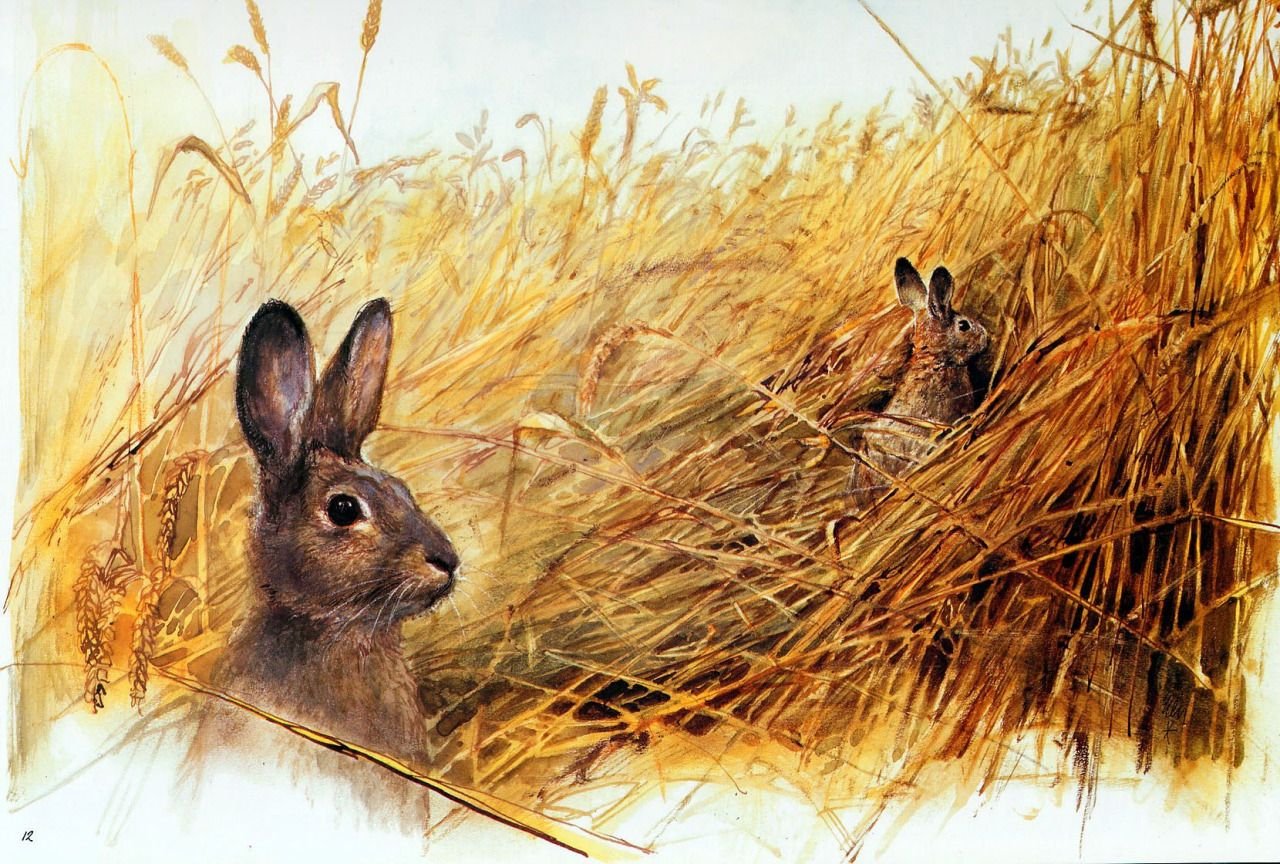 Кролик в траве в живописи