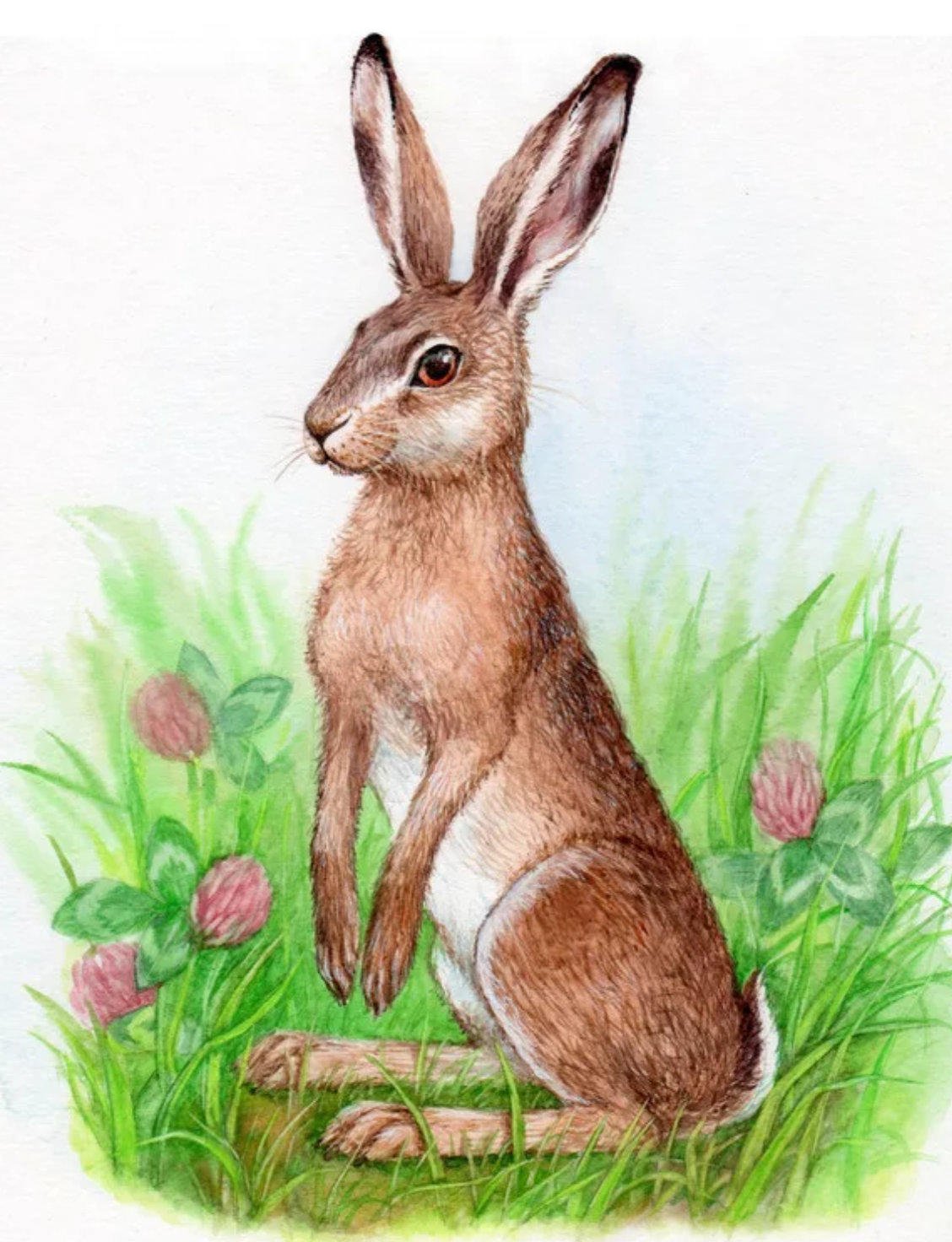 Заяц в лесу рисунок акварель