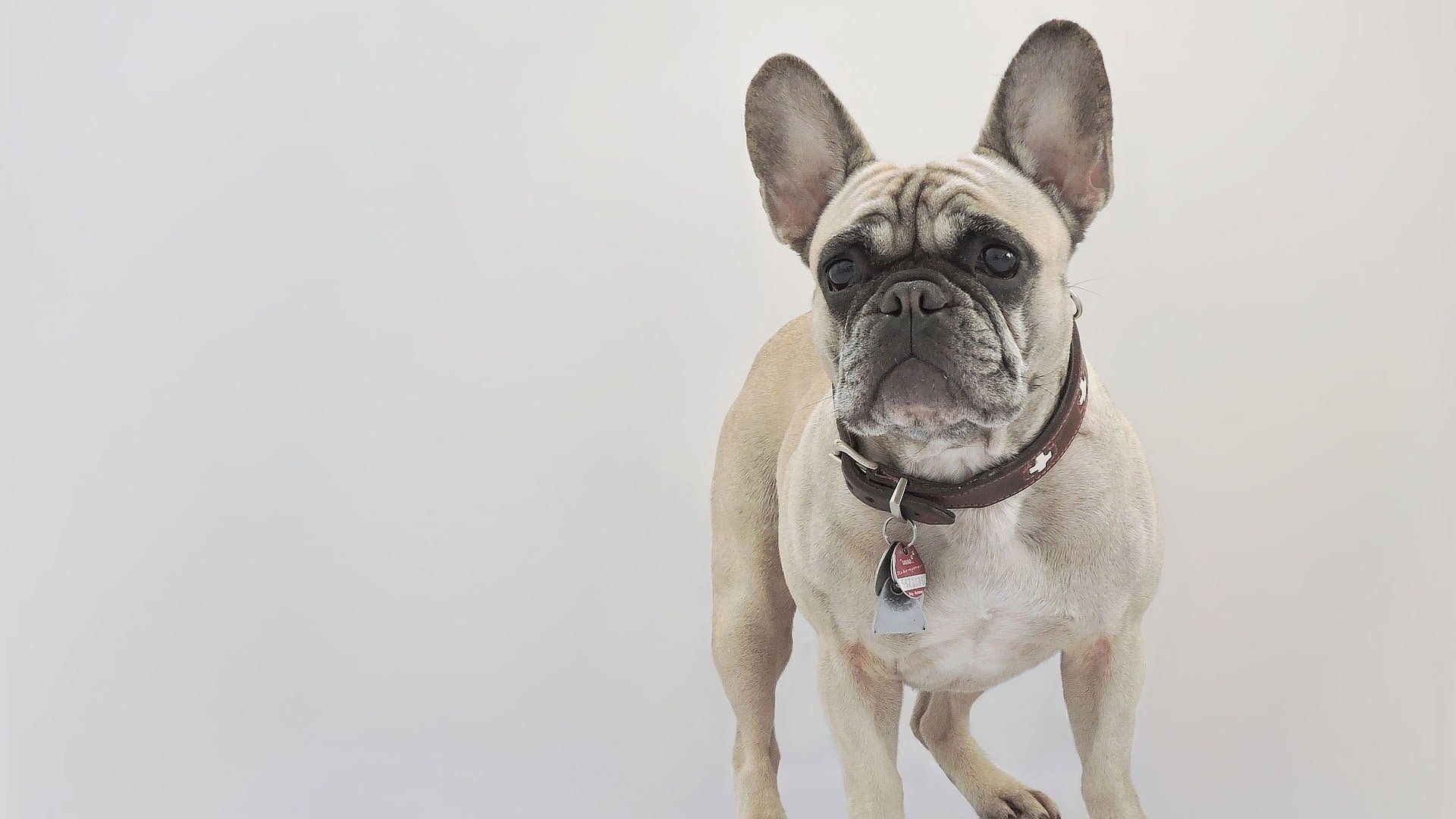 Французский бульдог сзади на белом фоне