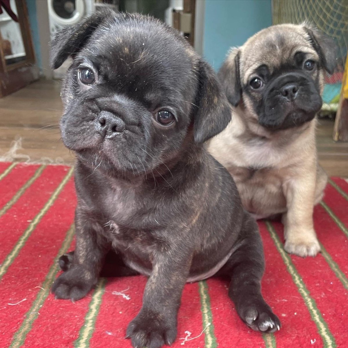 Черный Мопс и французский бульдог