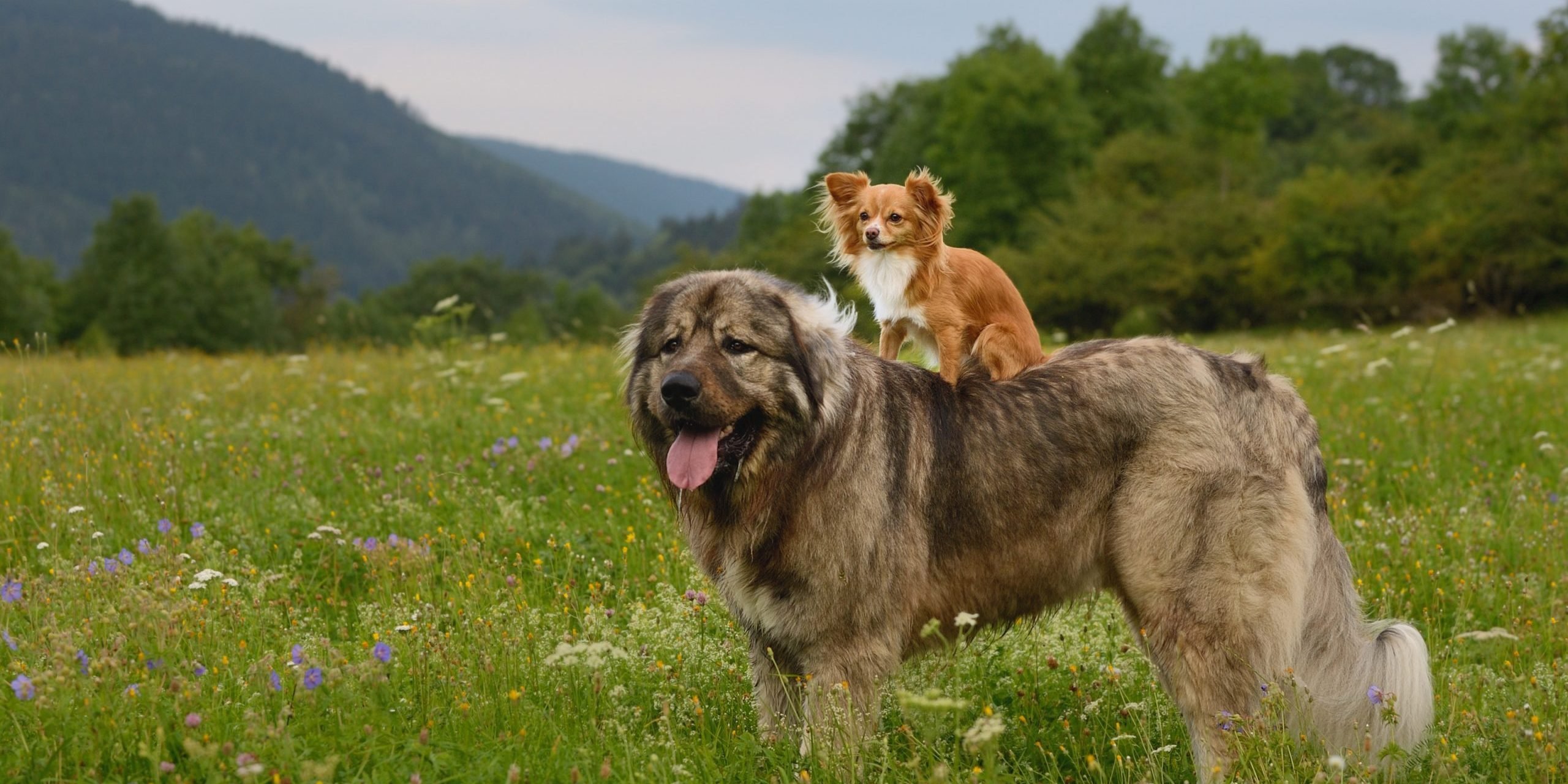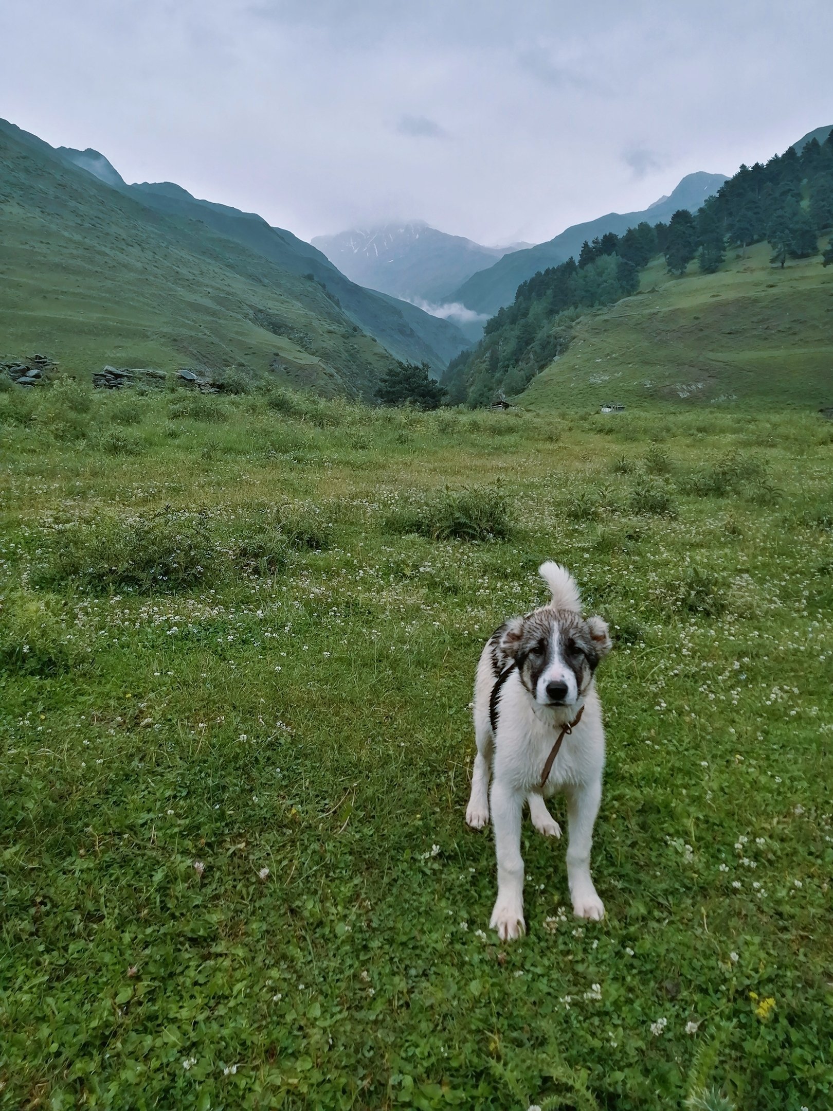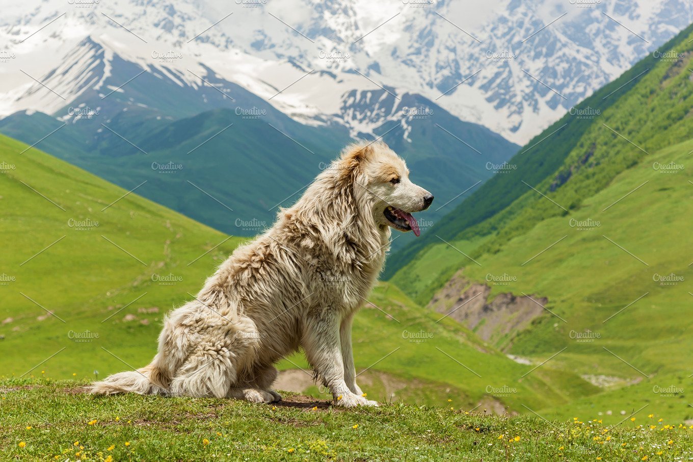 Кавказская овчарка на фоне гор