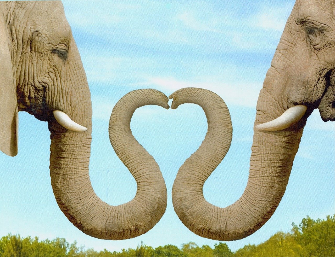 Слоны с переплетенными хоботами