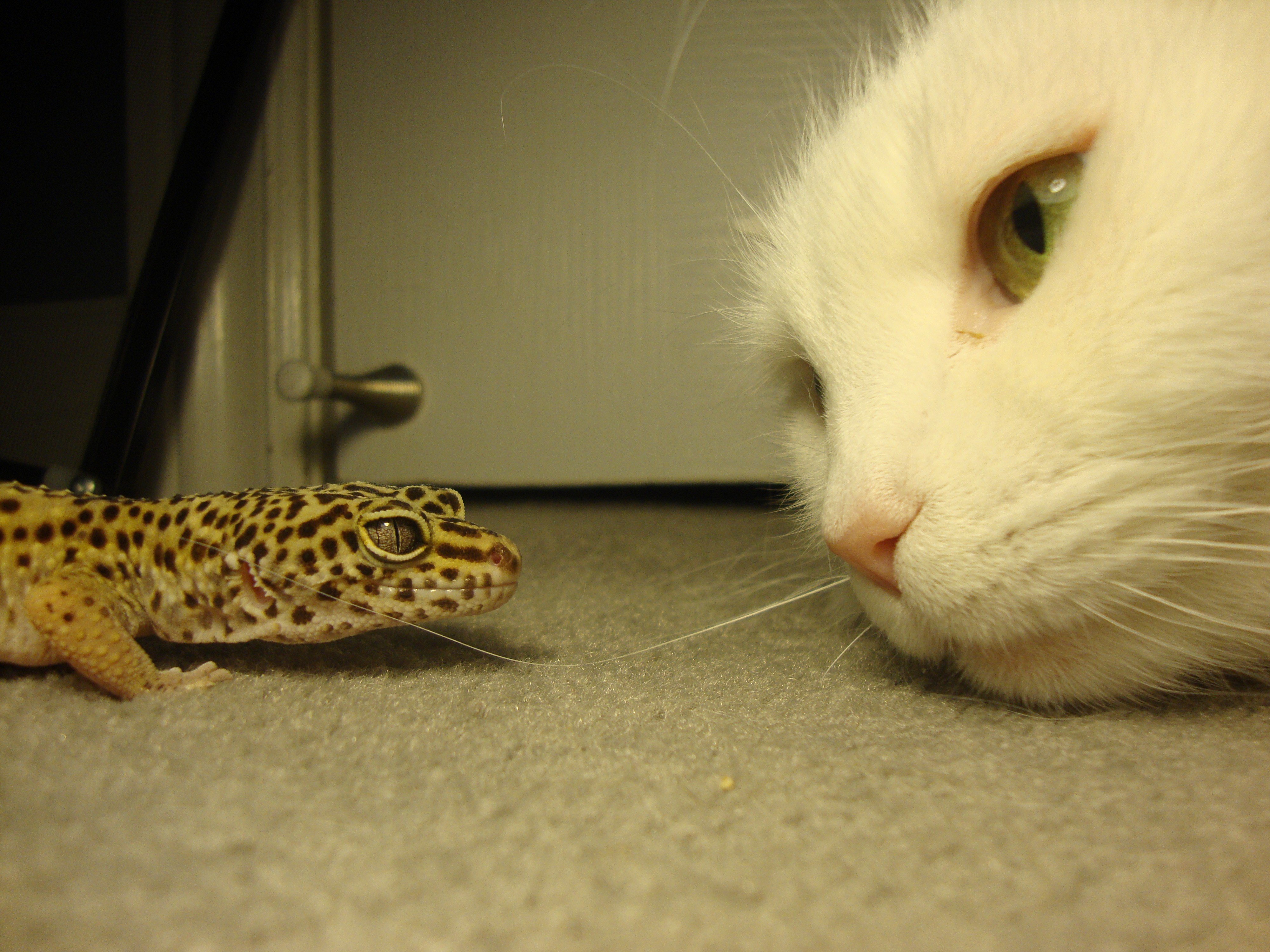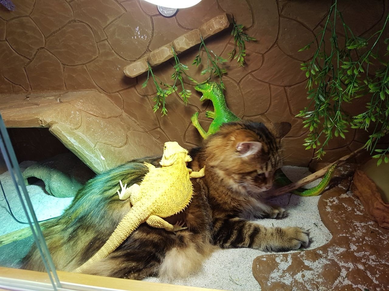 Домашняя ящерица и кошка
