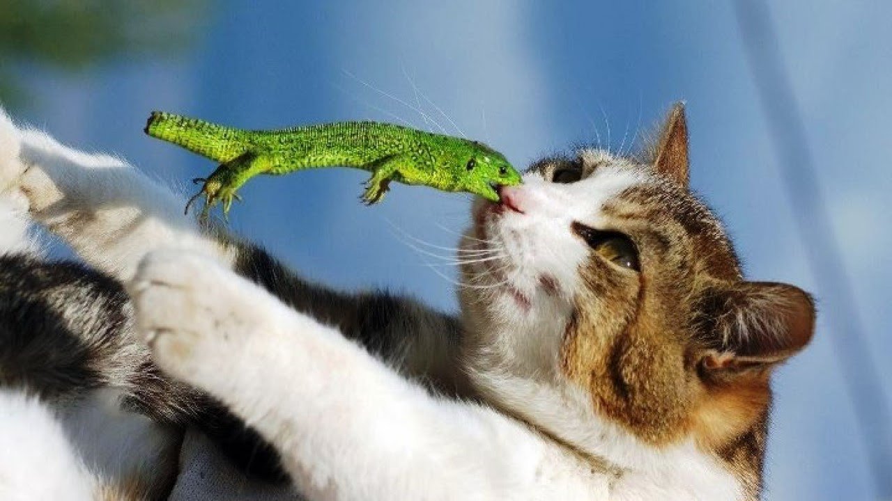 Кот и ящерица Дружба