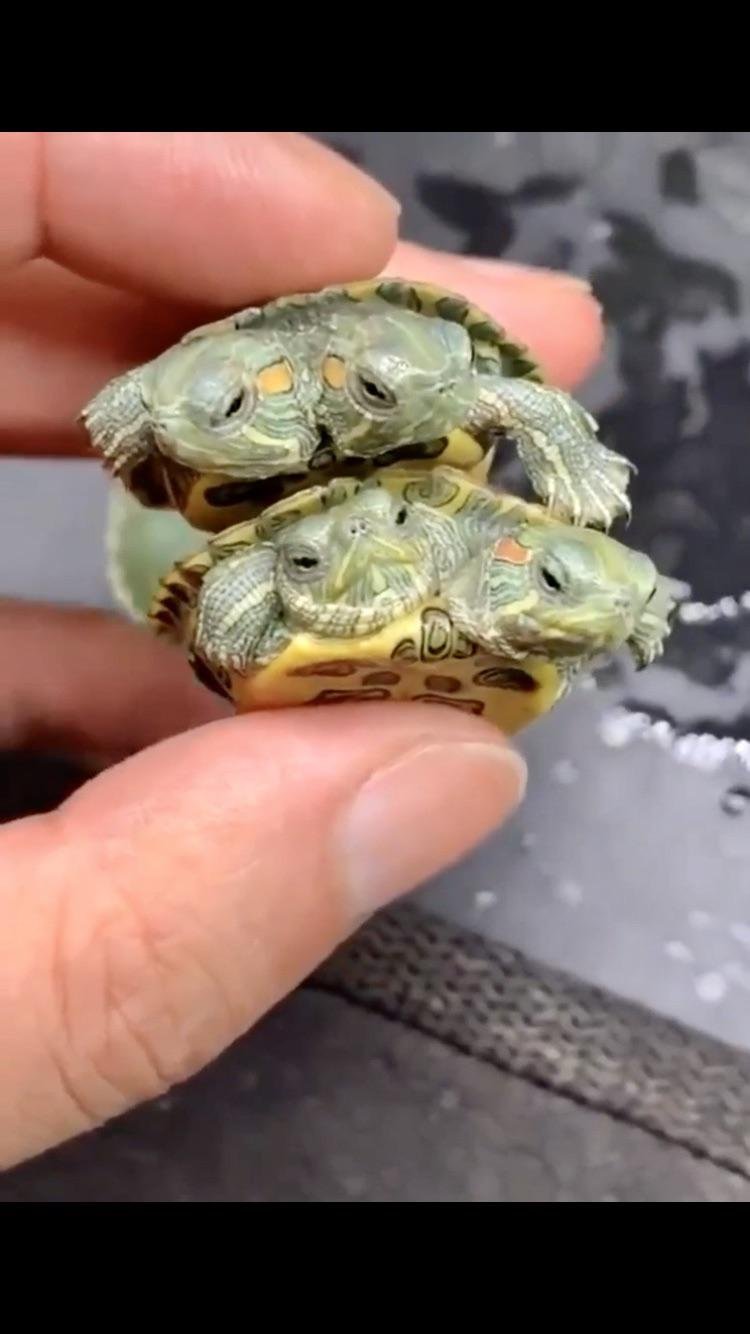 Двухголовая красноухая черепаха