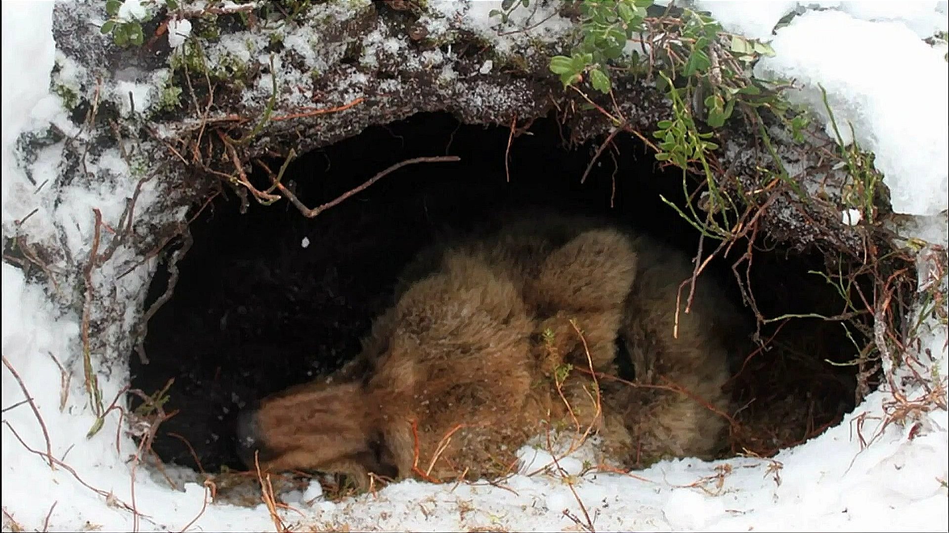 Бурый медведь зимой в берлоге