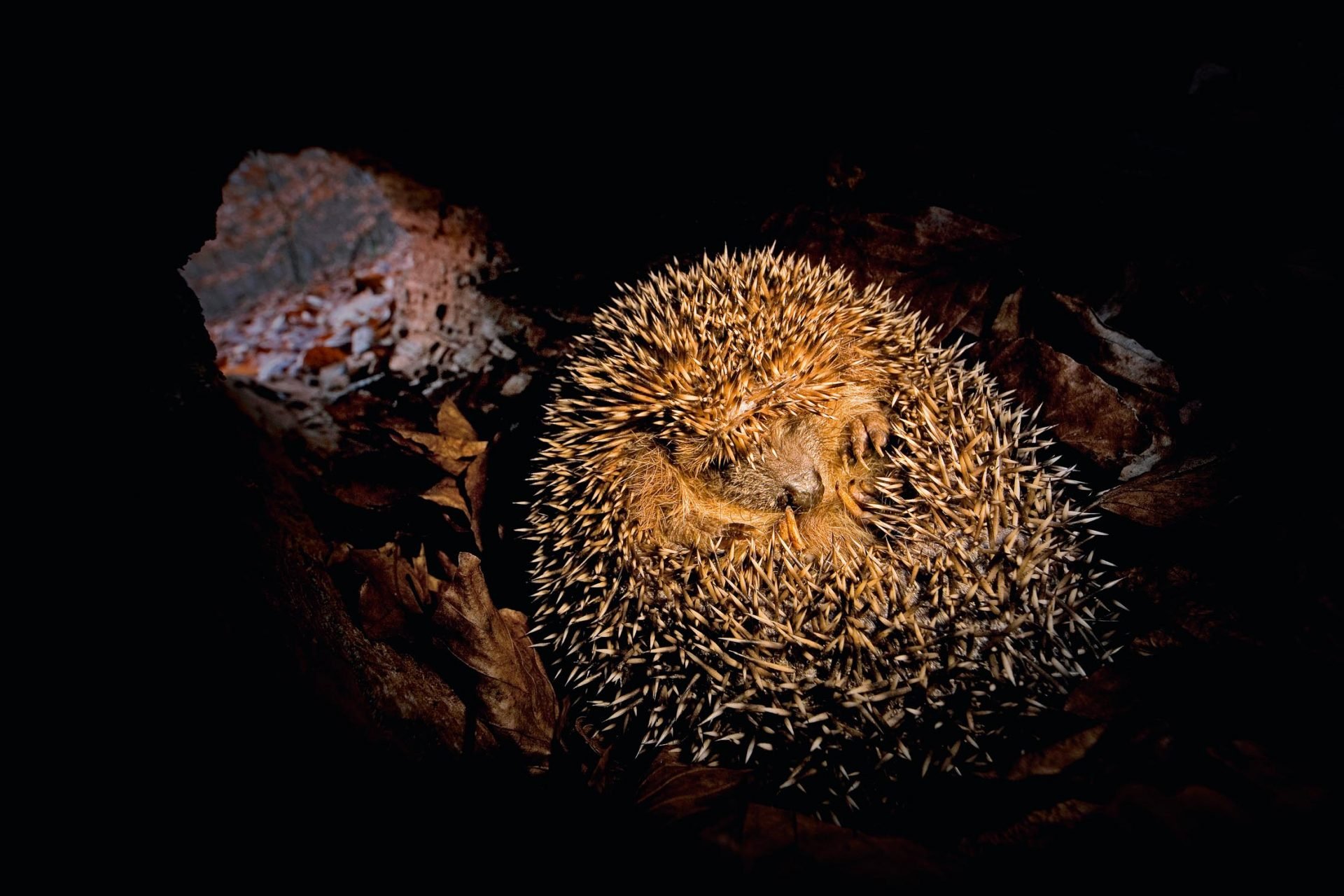 Ушастый еж в спячке