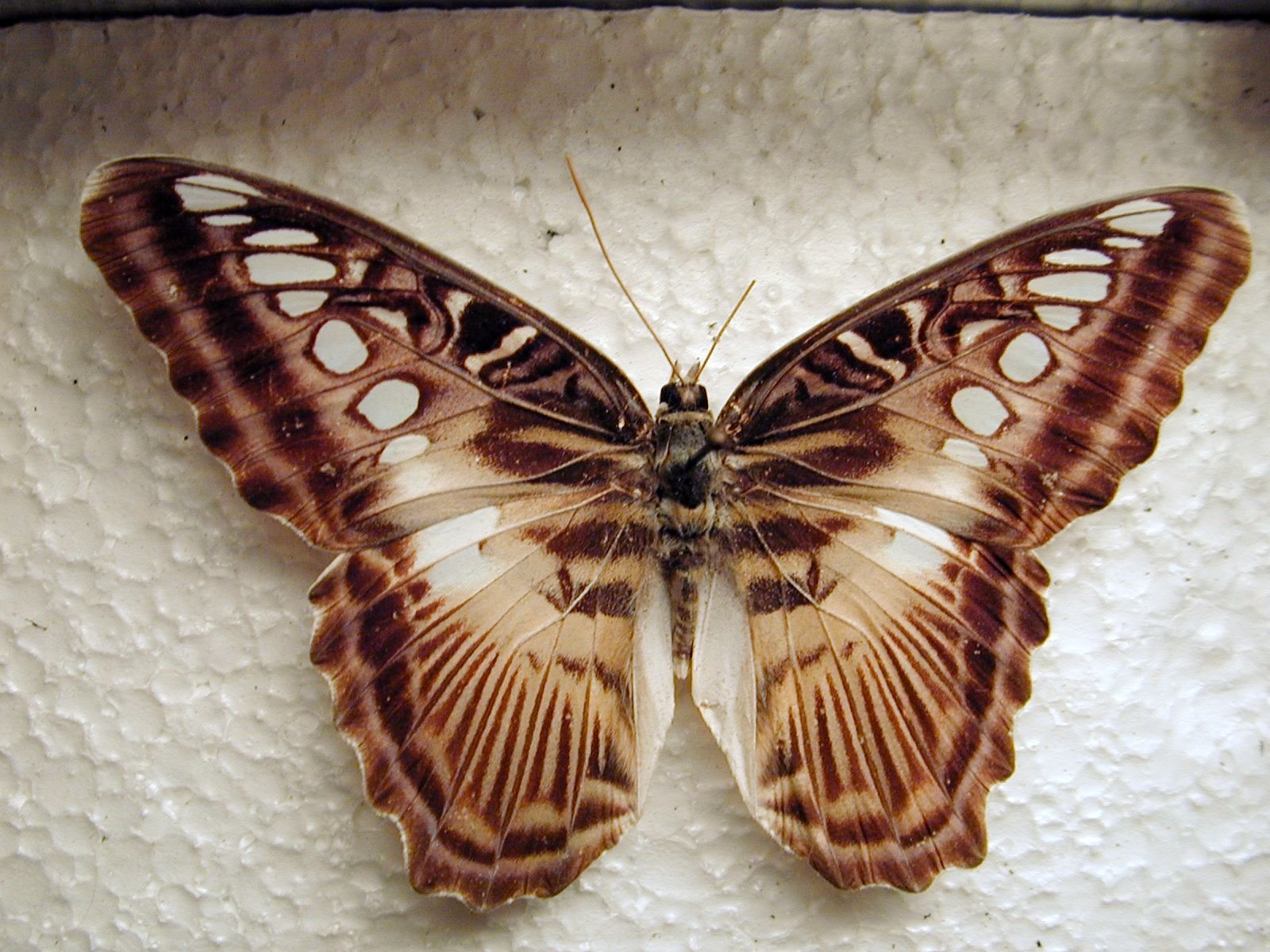 Большая коричневая бабочка с белыми пятнами