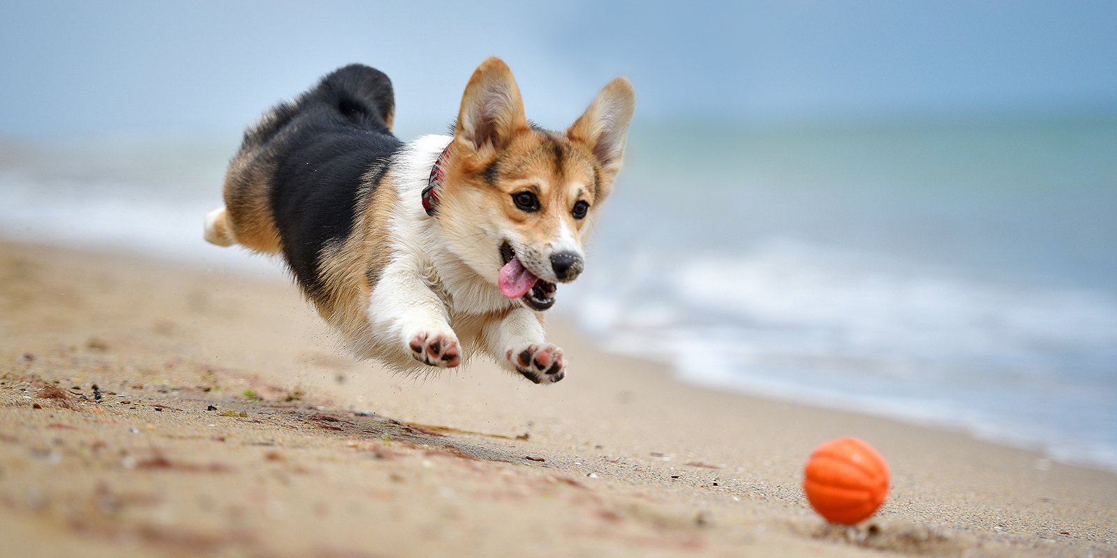 Вельш корги на море