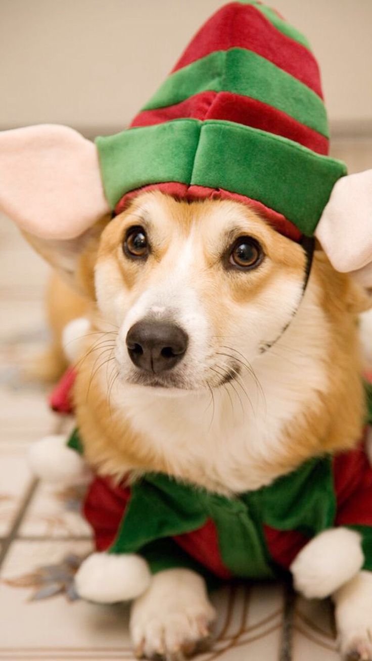 Корги в новогодней одежде
