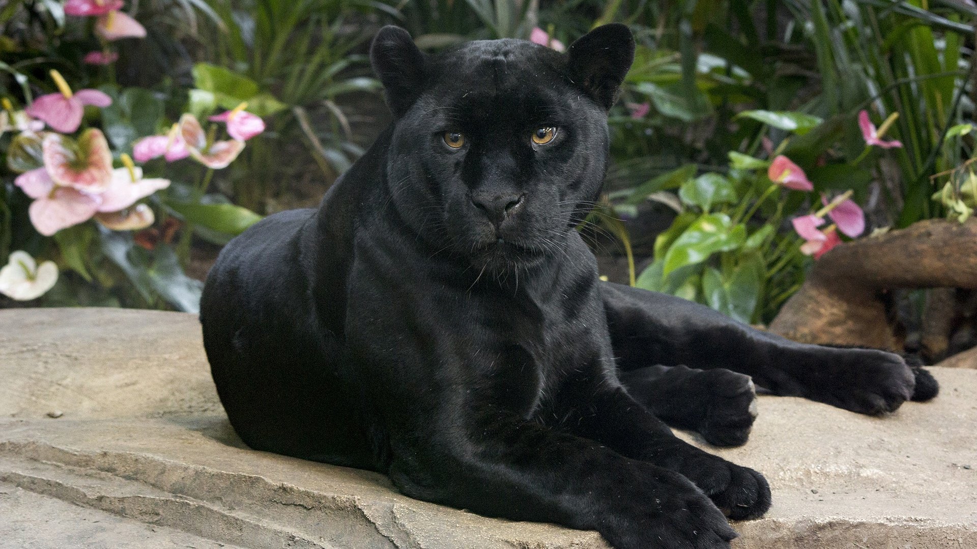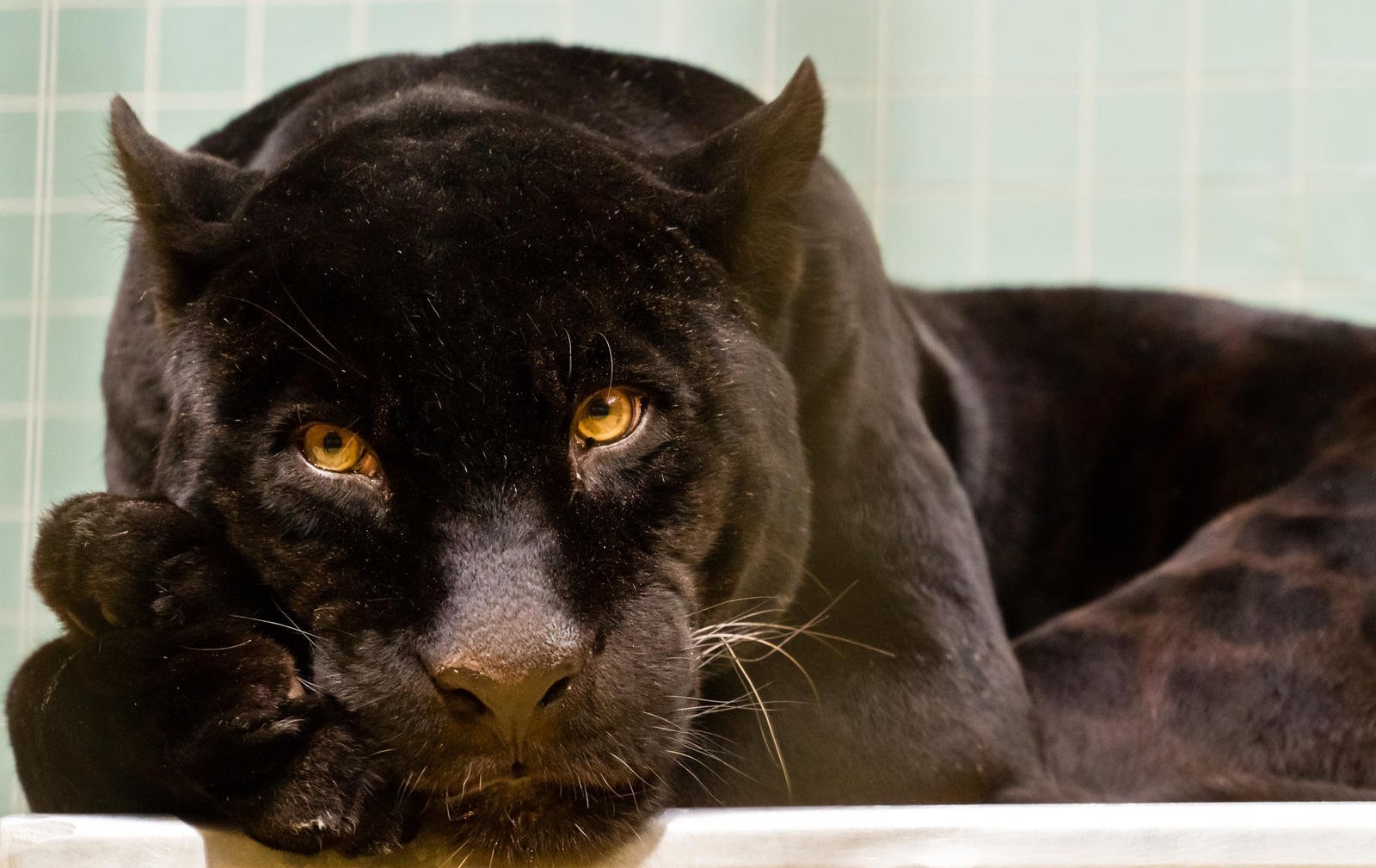 Черная пантера лежит