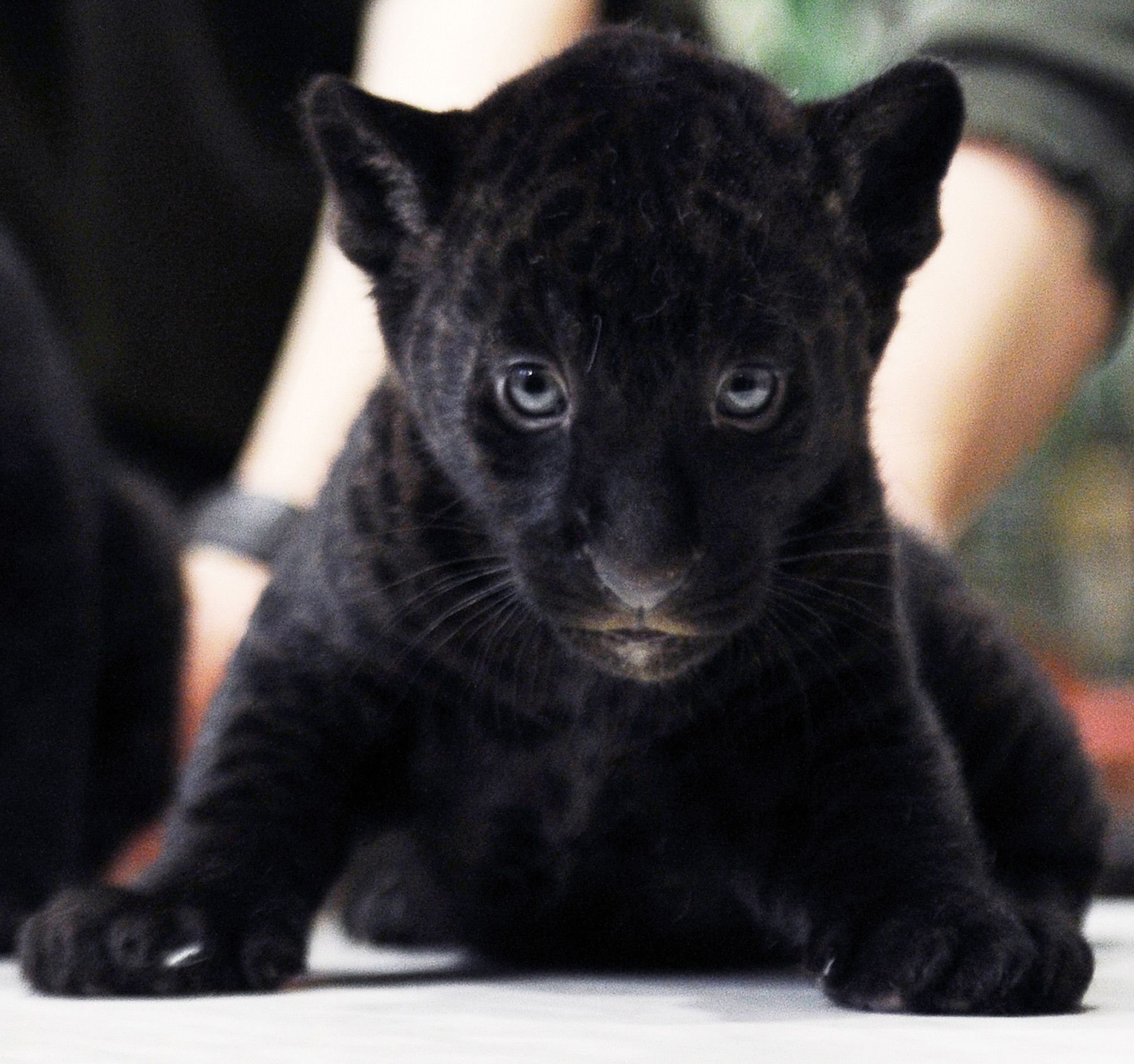 Черная пантера с детёнышем