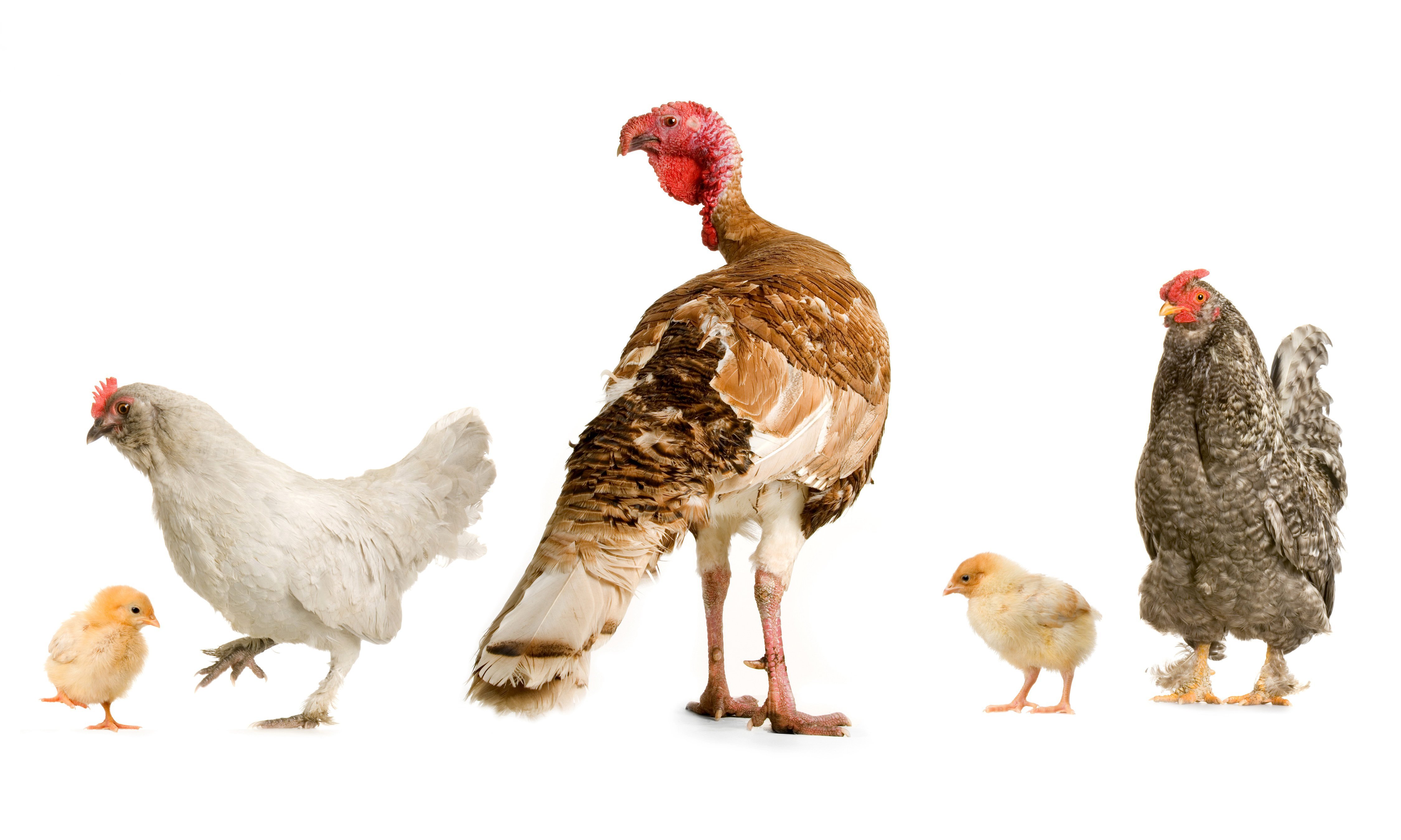 Семья индюков на белом фоне