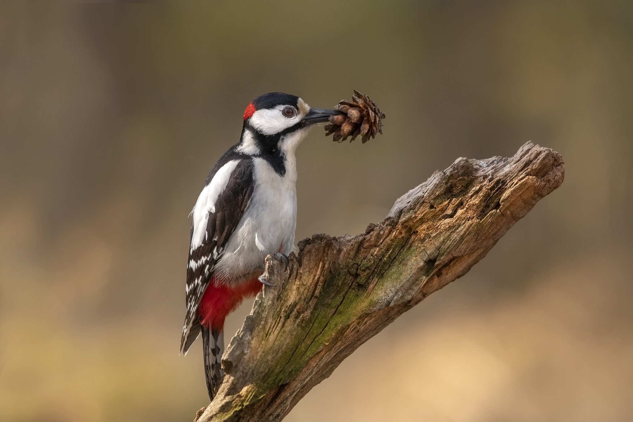 Большой пестрый дятел шишки