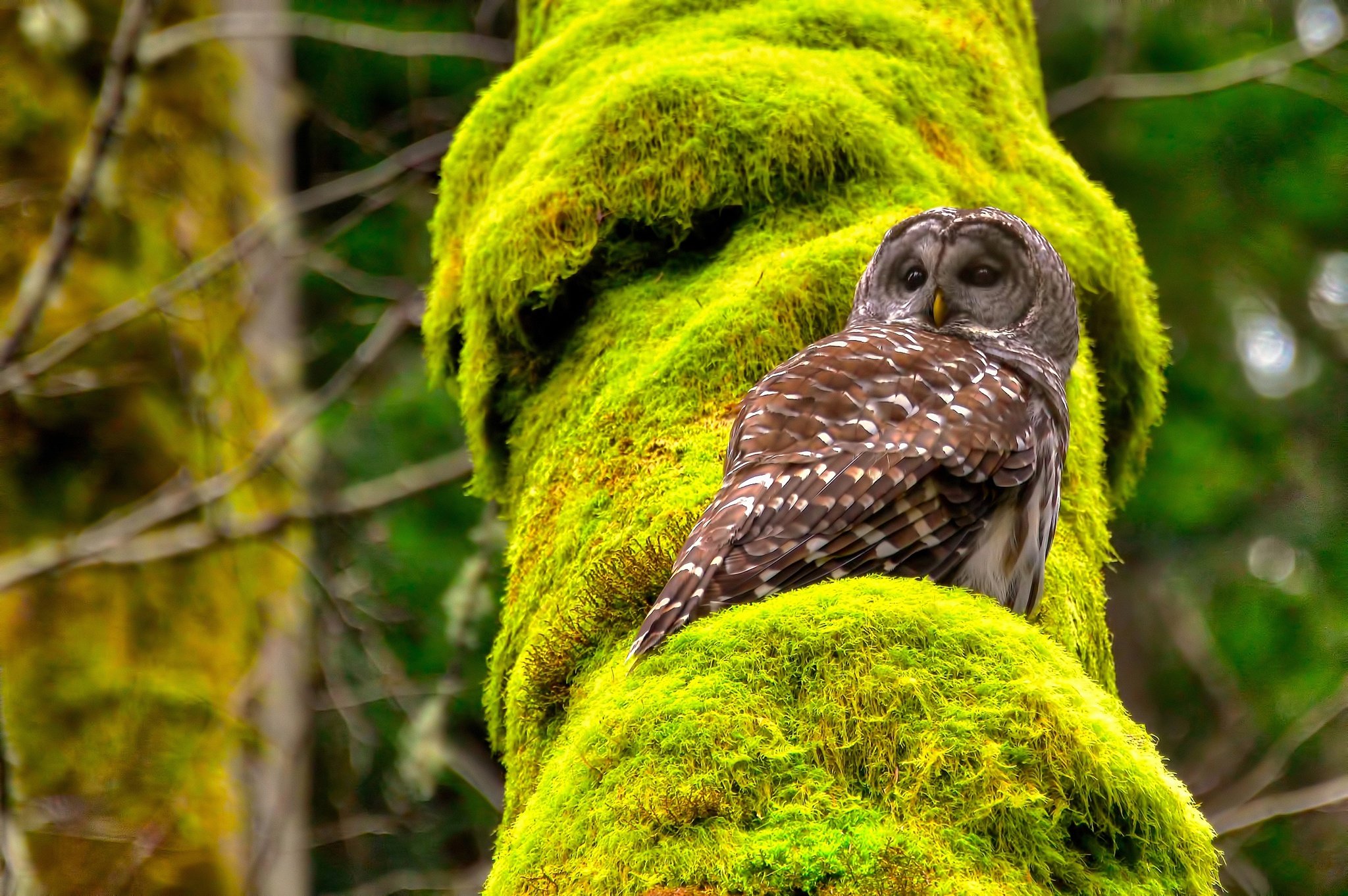 Бородатая неясыть зимой