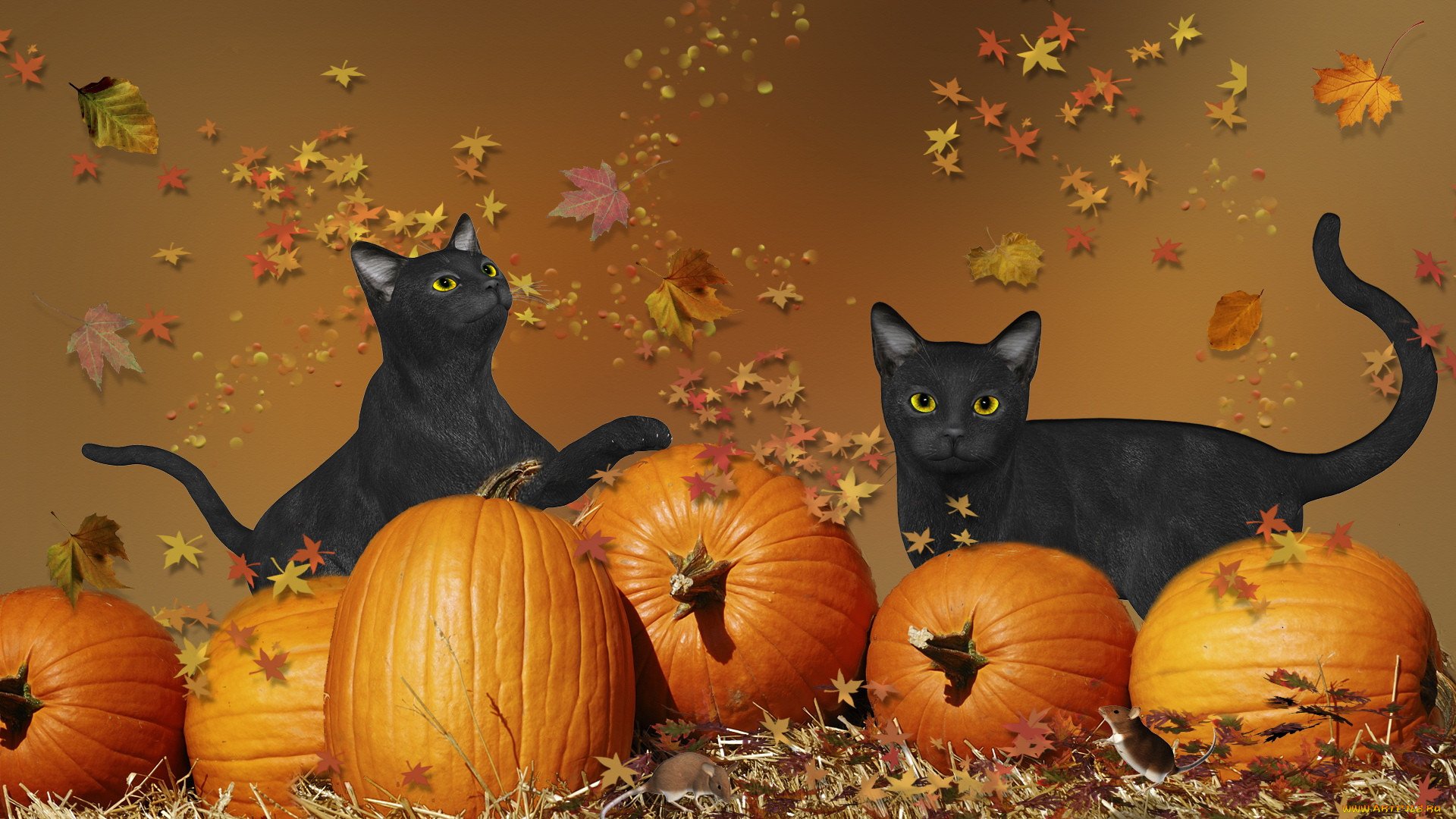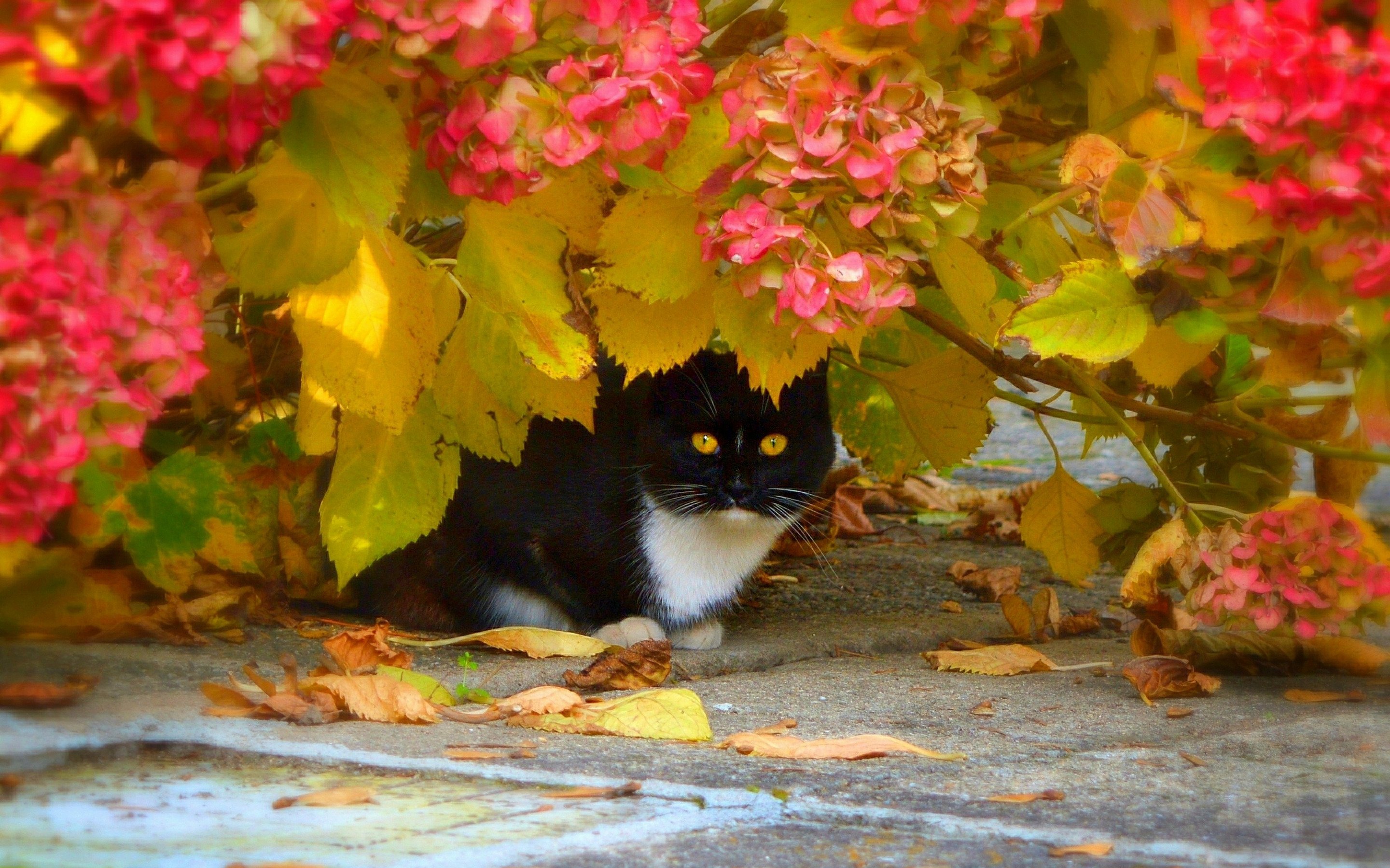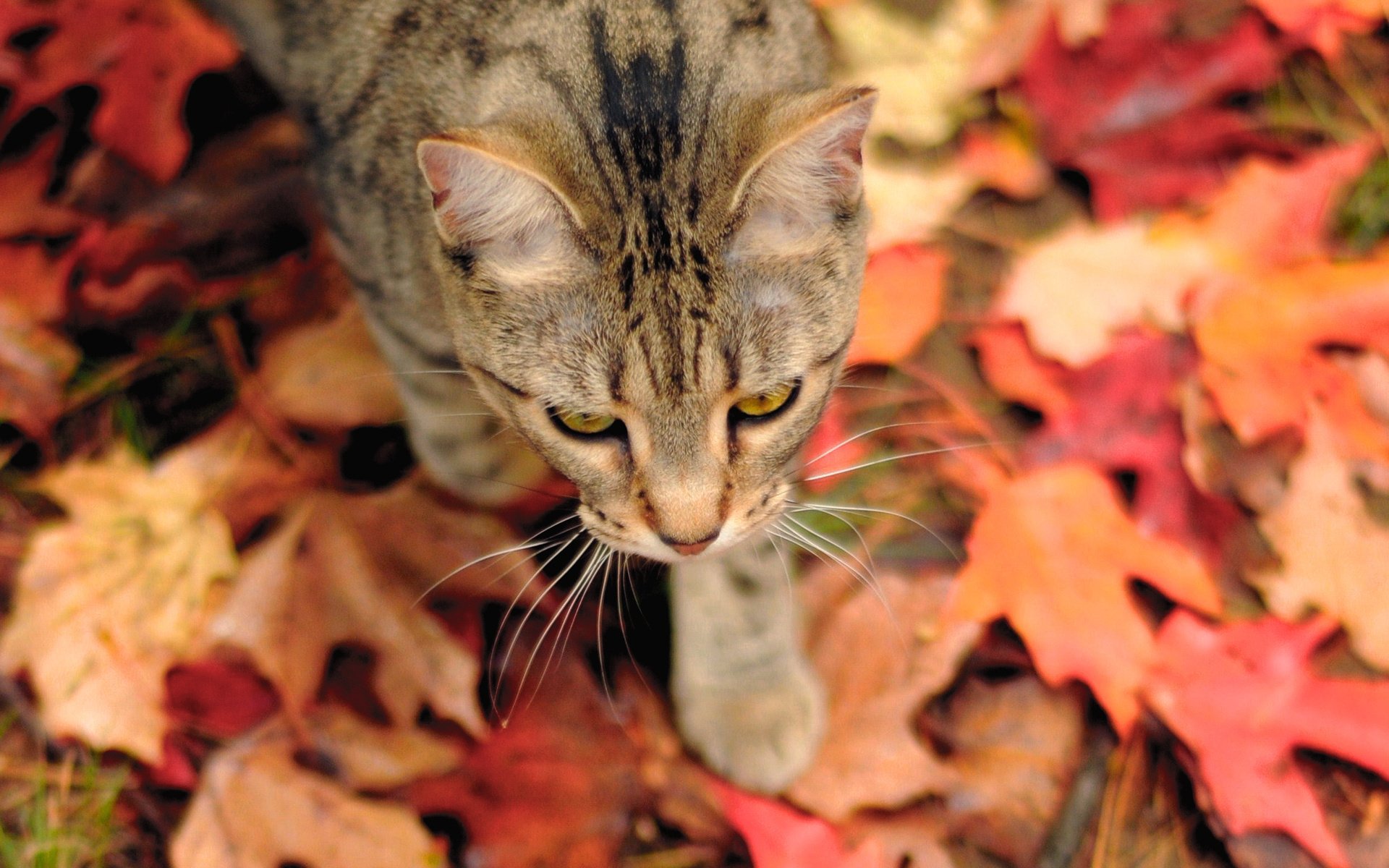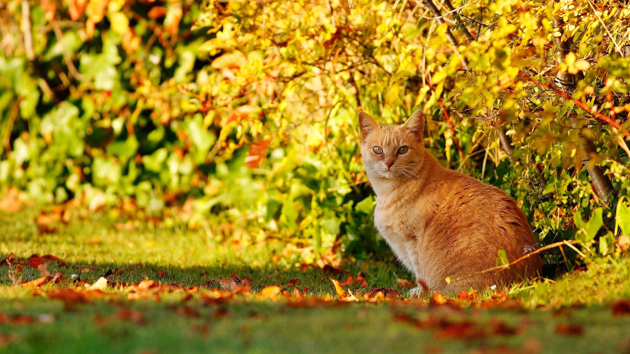 Обои на рабочий стол кошки осенью