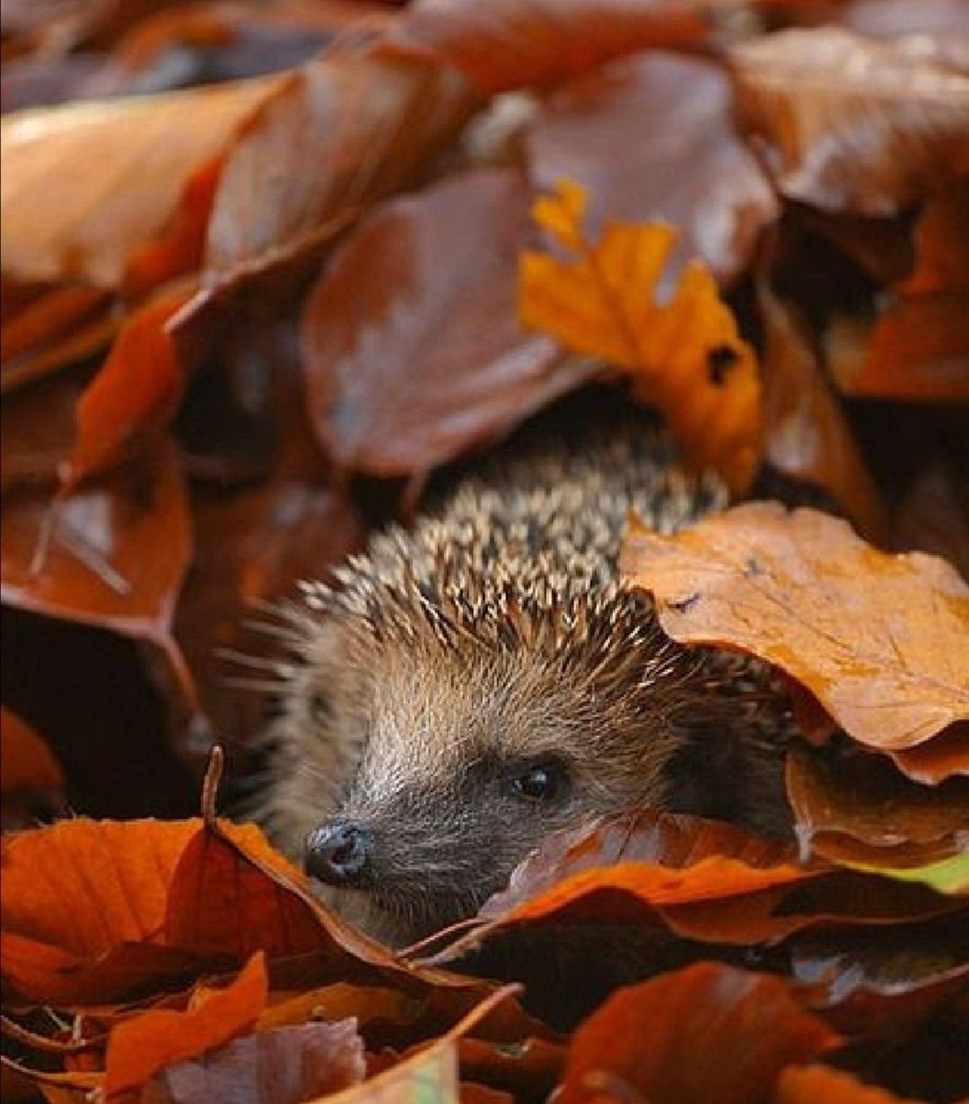 Еж спит в листьях