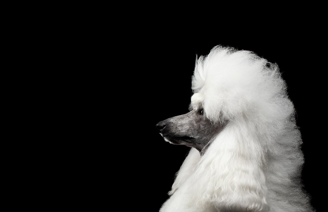 Пудель на черном фоне
