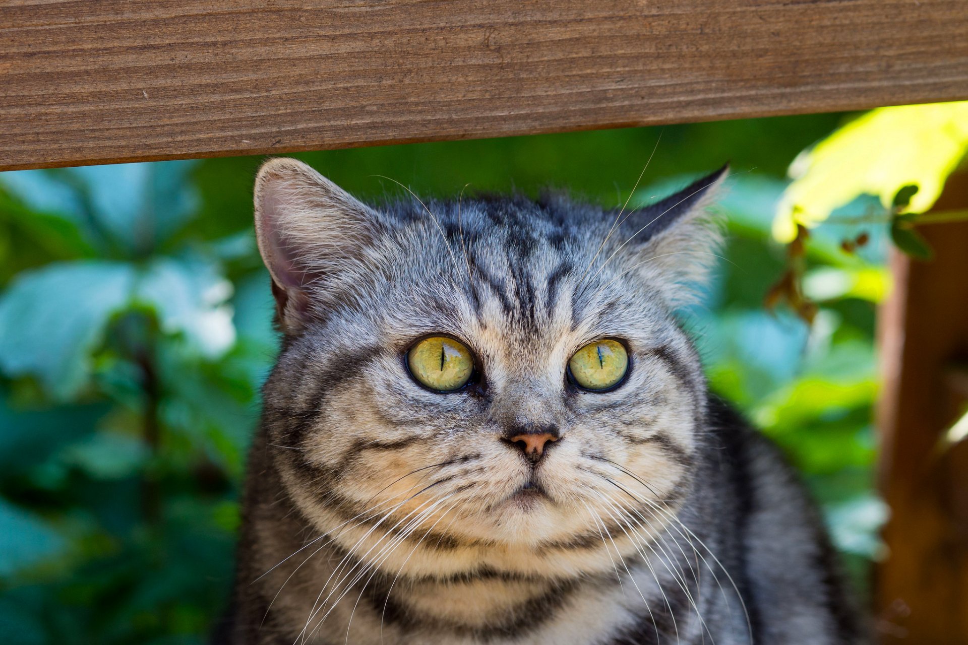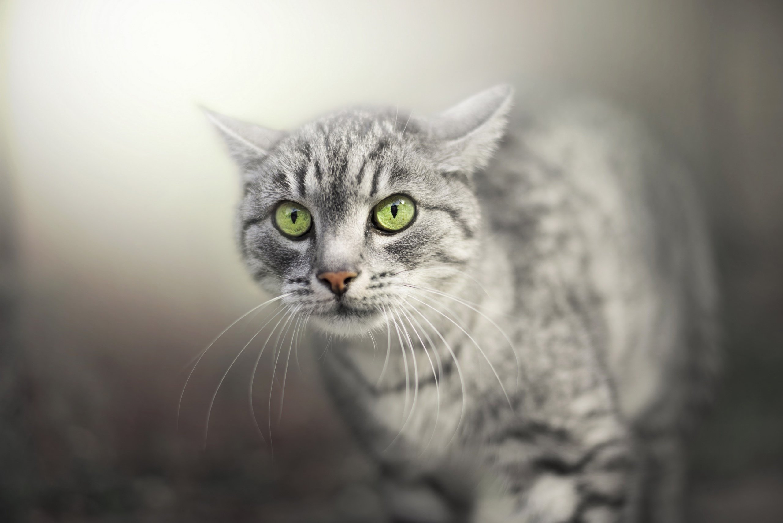 Серый кот с зелеными глазами