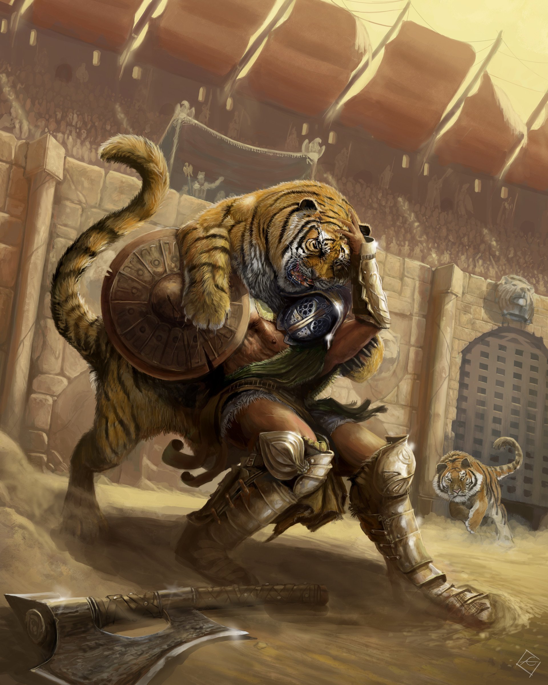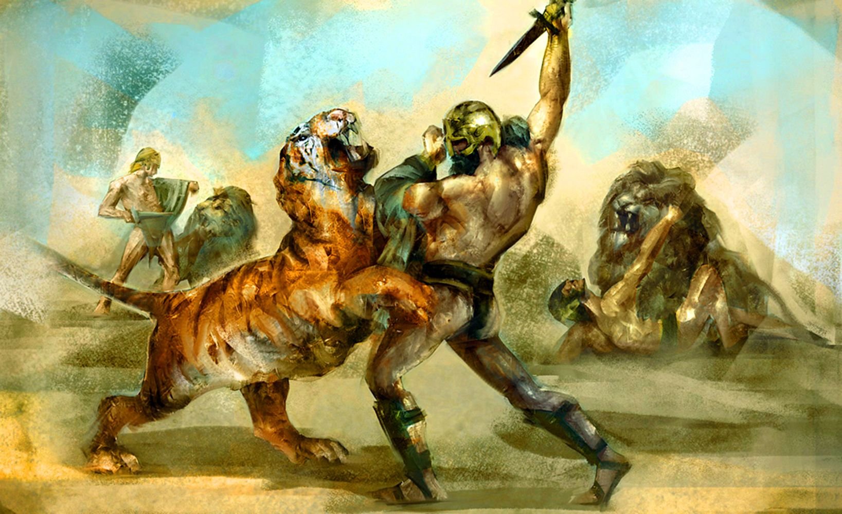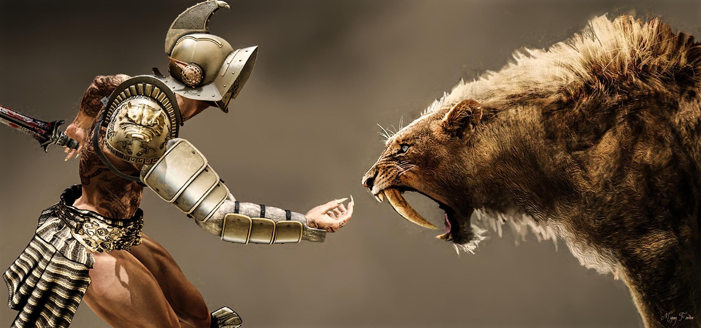 Гладиатор со львом арт