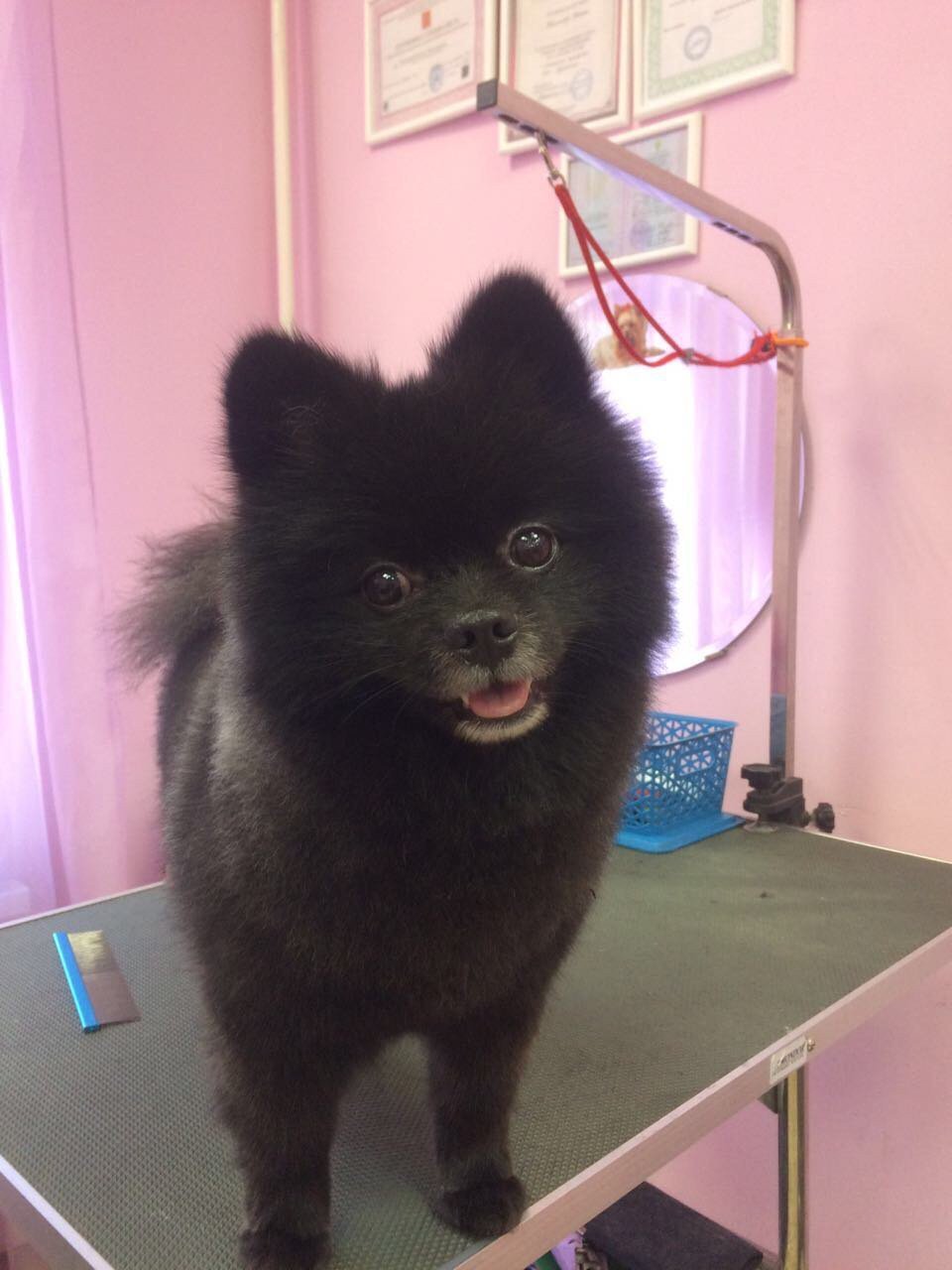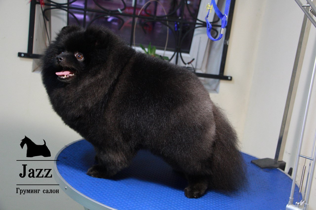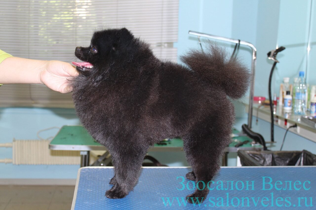Груминг черного померанского шпица