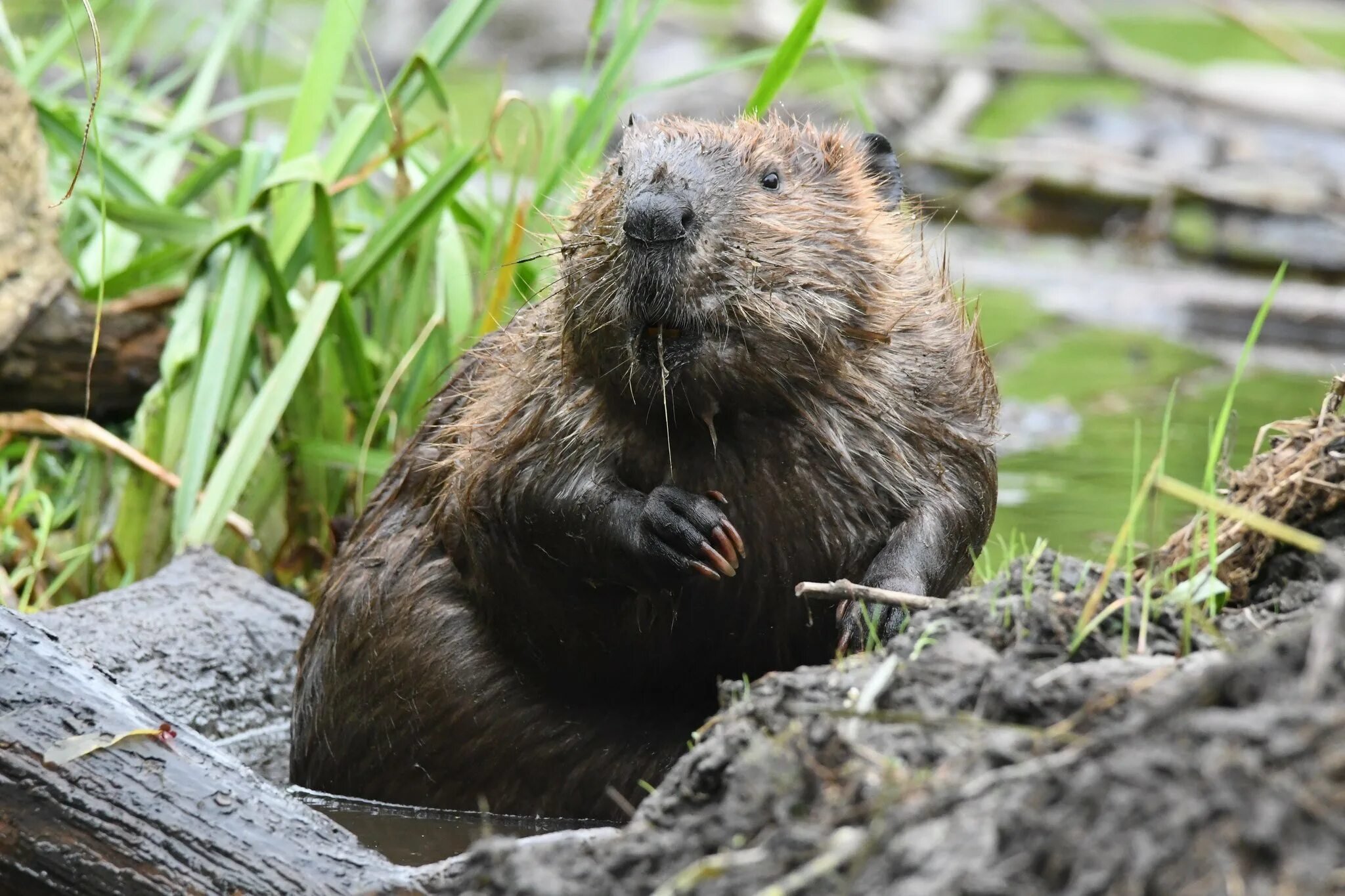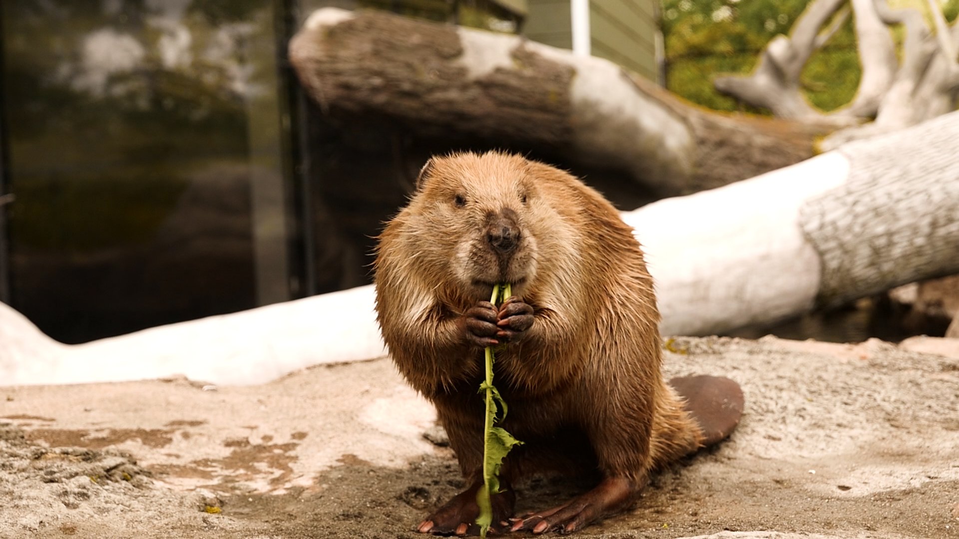 Бобр с бревном
