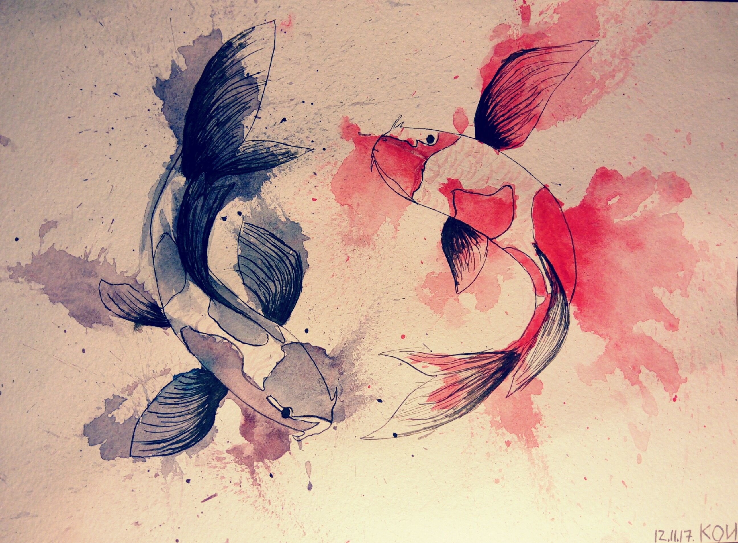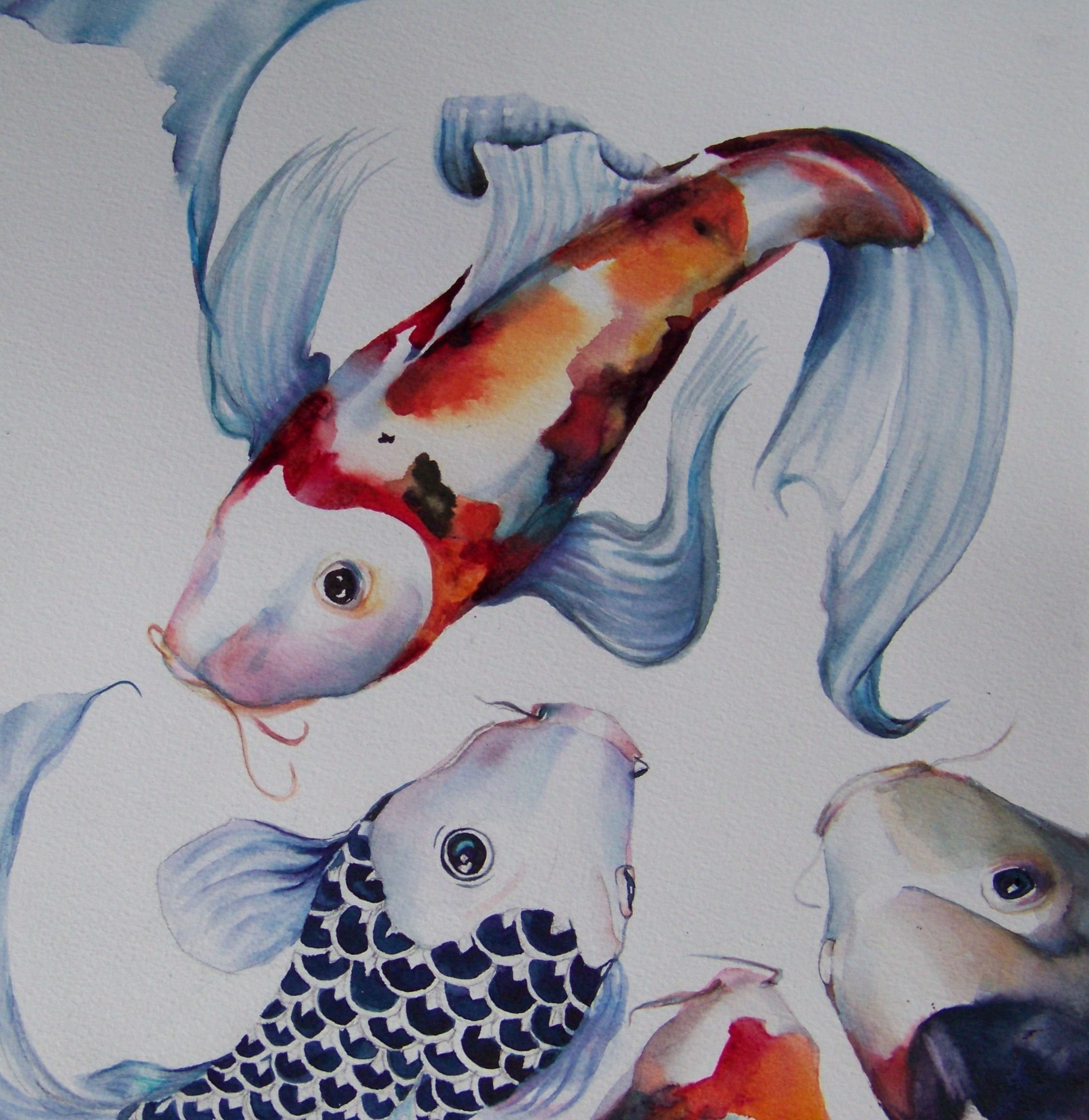 Рыбки кои акварель японские художники