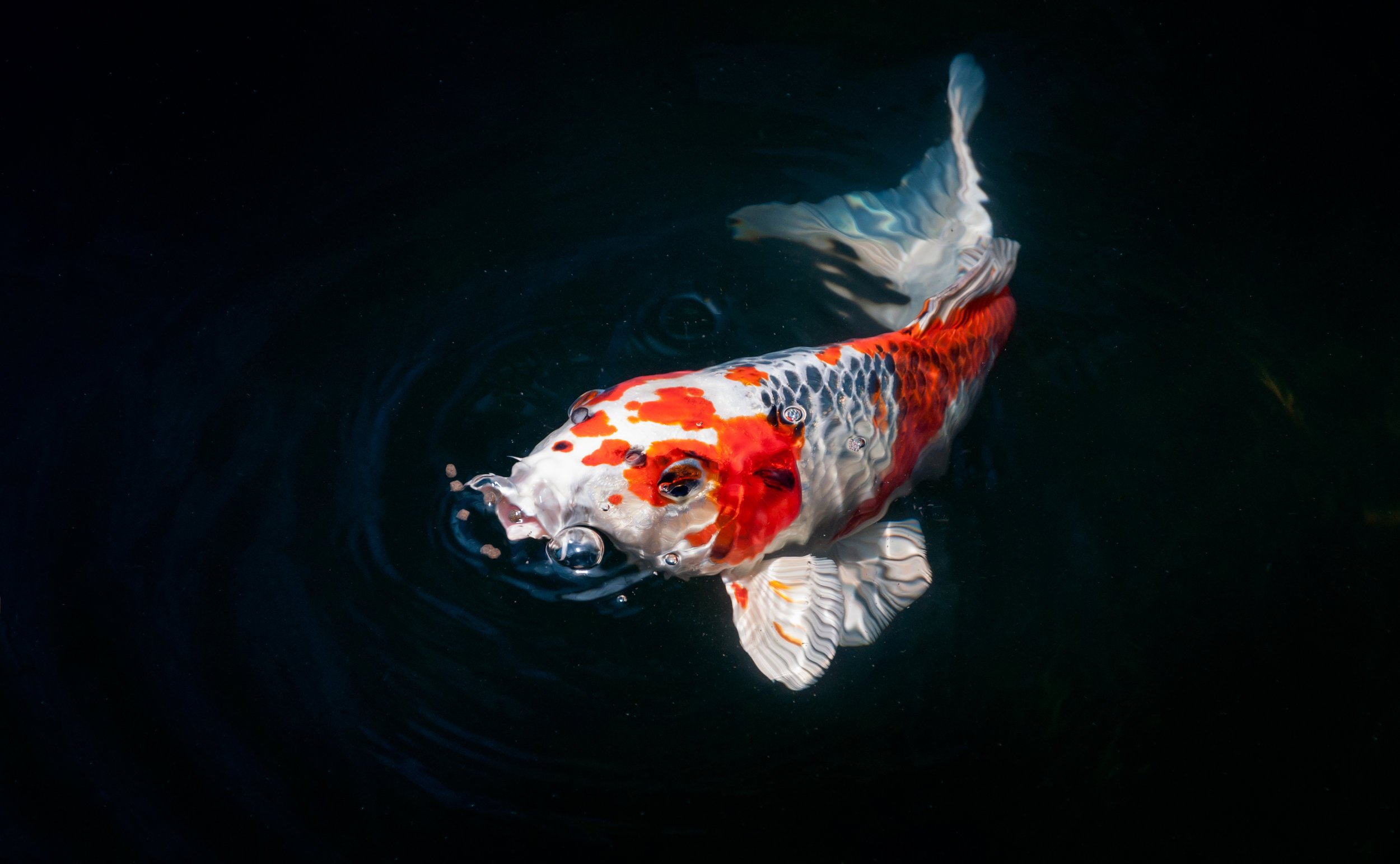 Рыбки кои на черном фоне