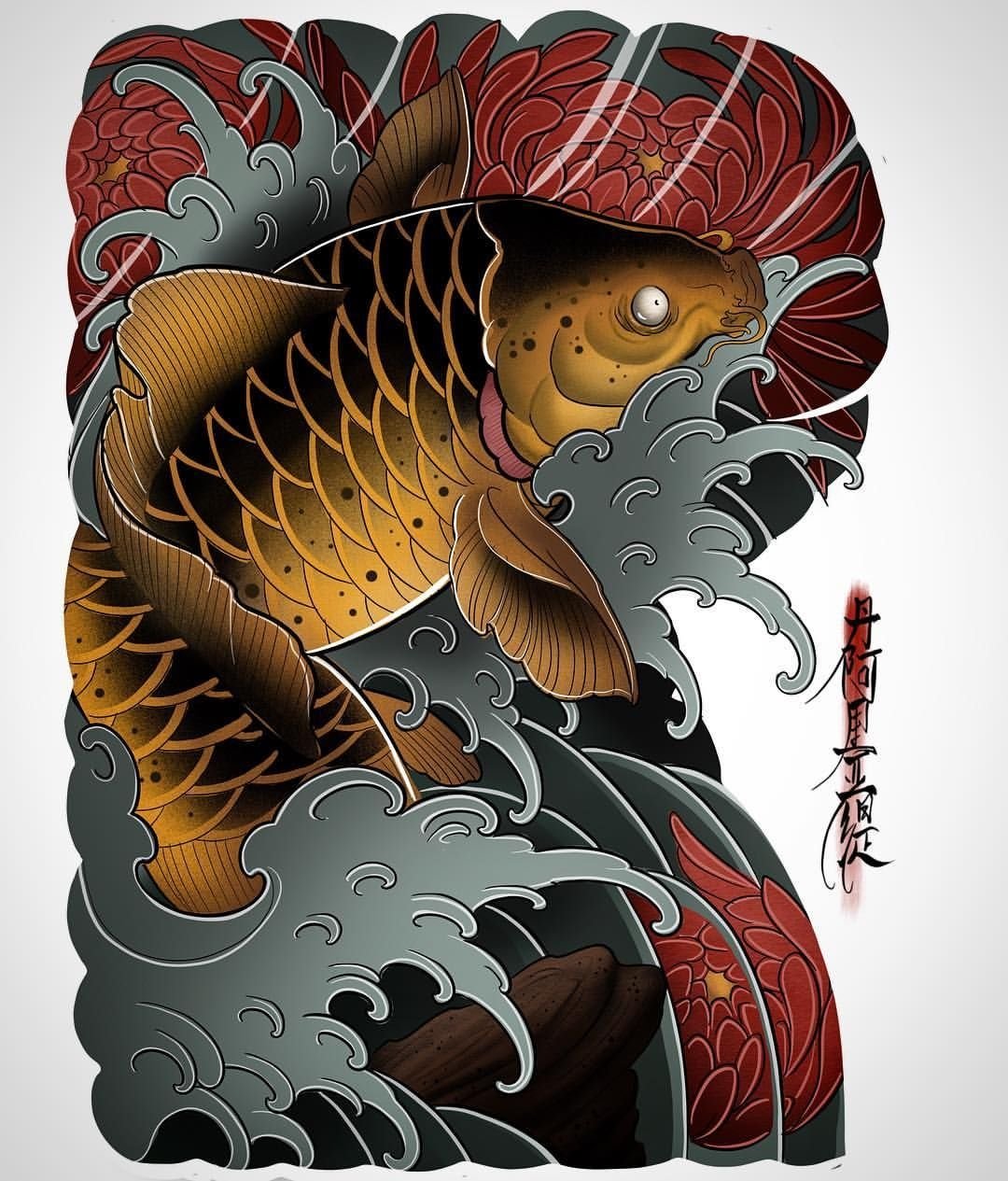 Тату карпы кои Япония