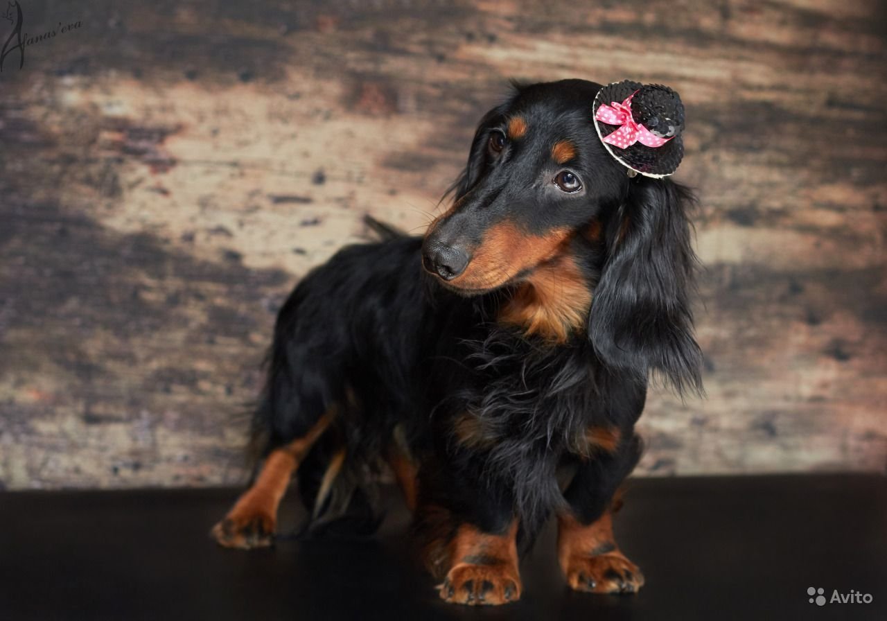 Кроличья такса длинношерстная мраморная