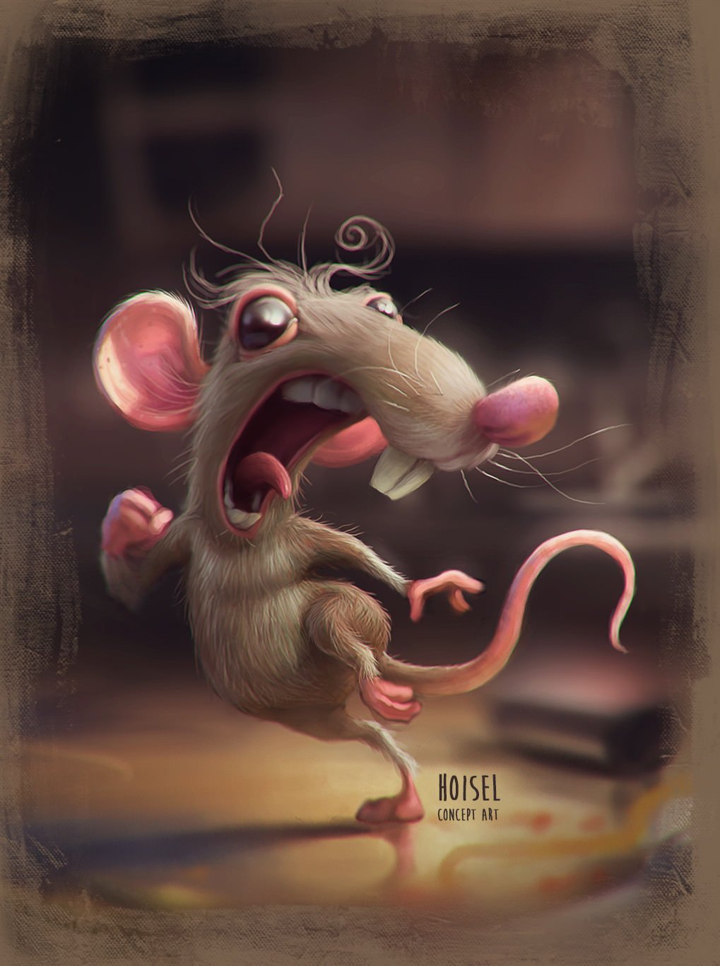 Нарисованная испуганная мышь