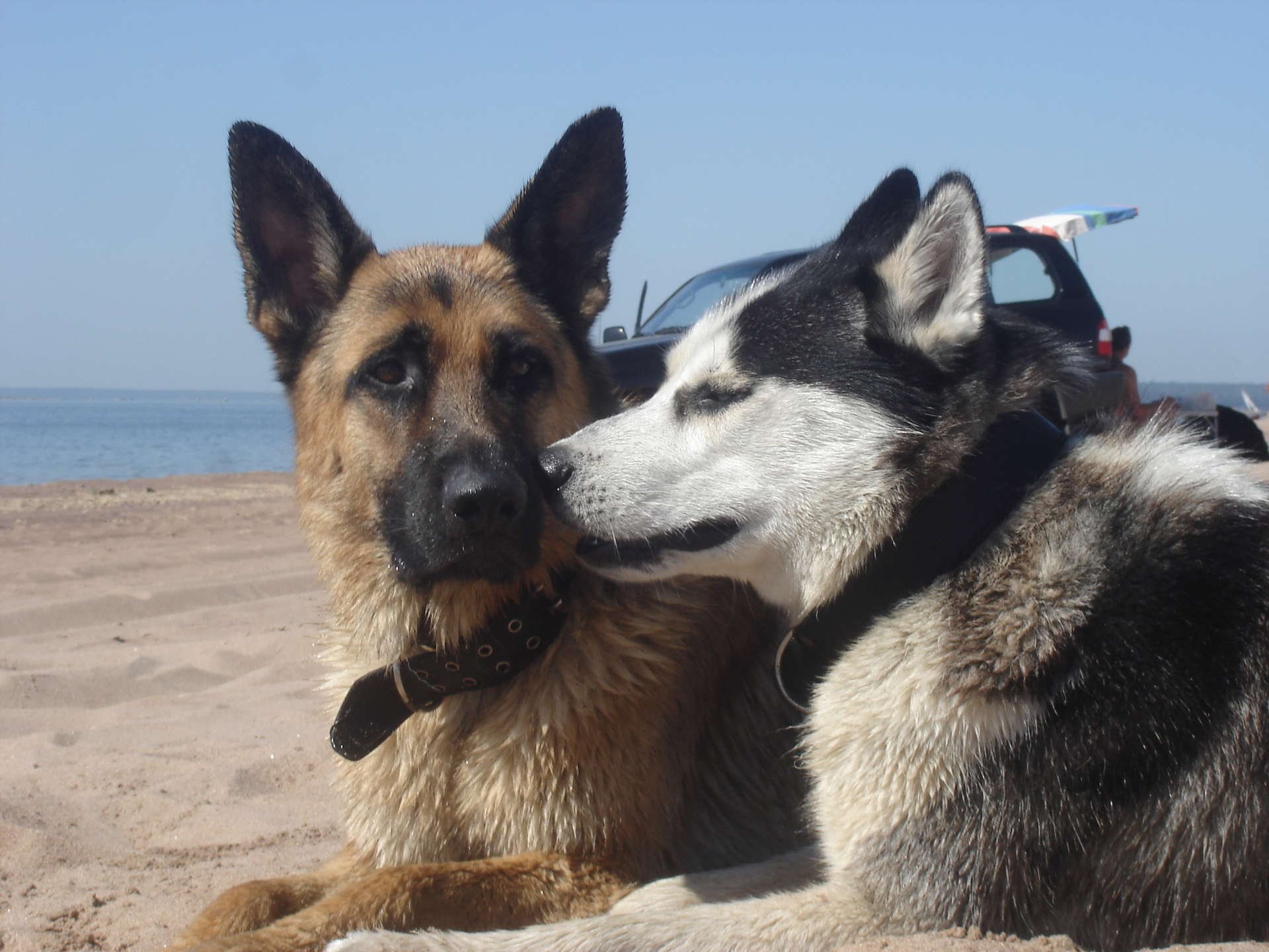 Сибирский хаски и немецкая овчарка