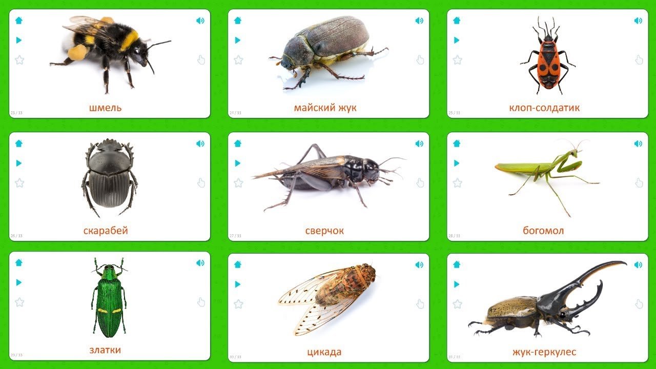 Карточки для детей. Насекомые