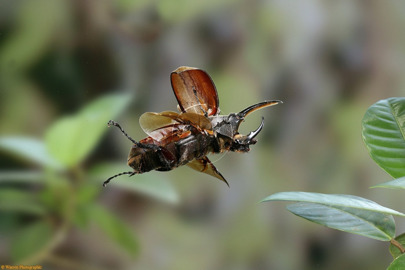 Жук Рогач зеленый в полёте
