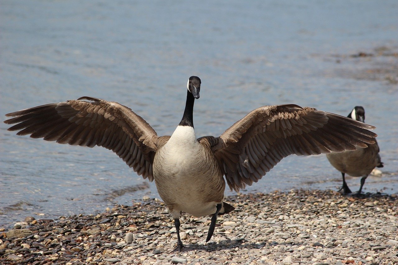 Гусь с распахнутыми крыльями