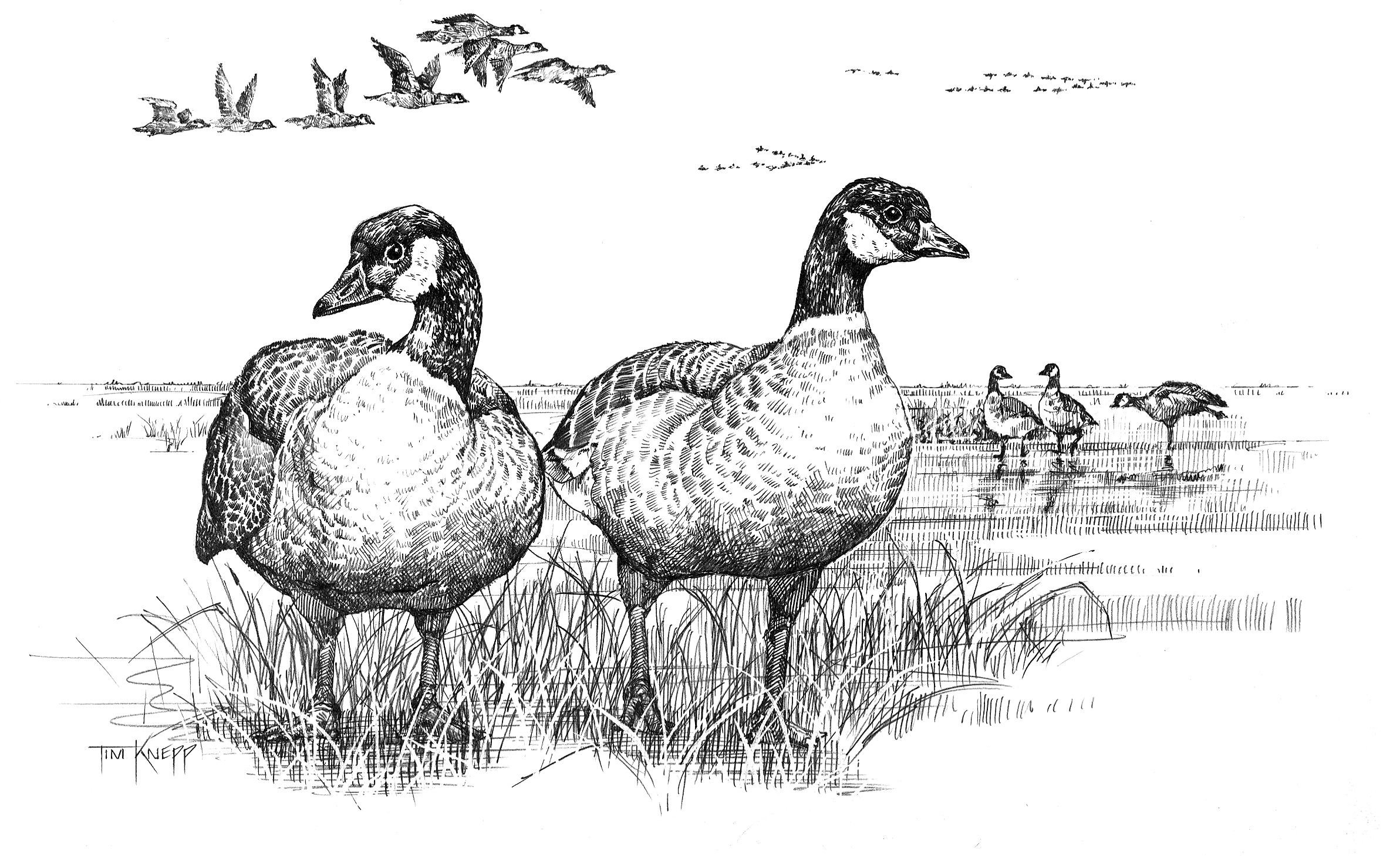 Гуси картина черно белая