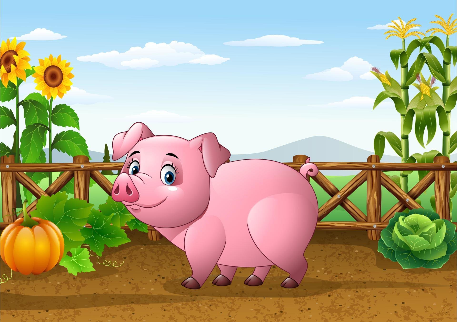 Свинья на ферме рисунок
