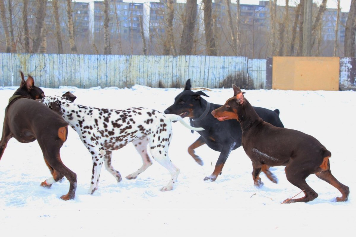 Доберман ротвейлер и далматинец