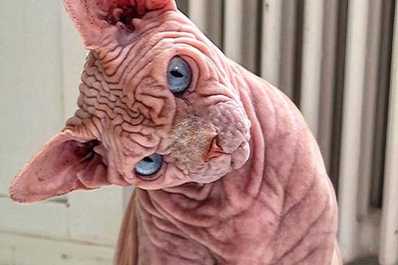 Лысая кошка позирует