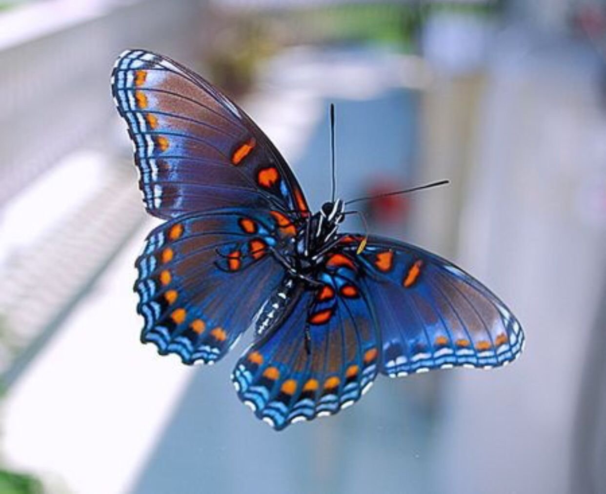 Бабочка голубая с оранжевым