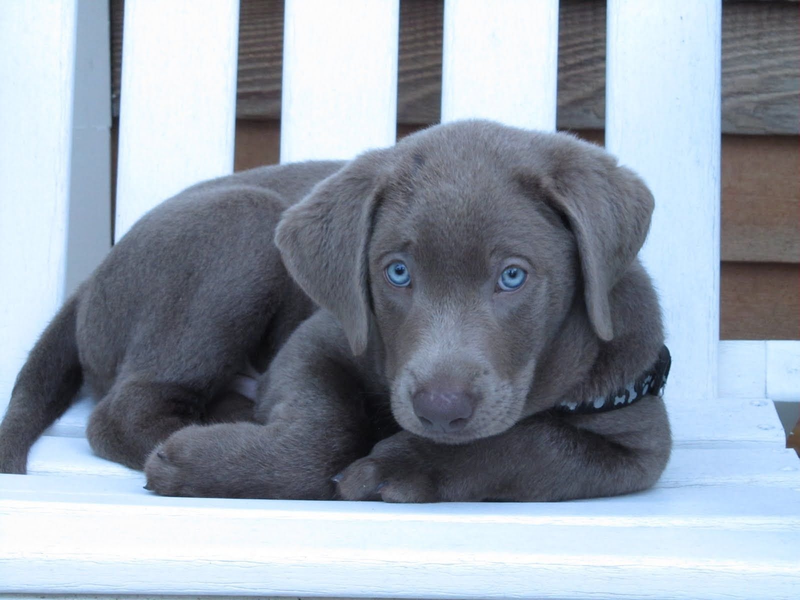 Коричневый щенок с голубыми глазами