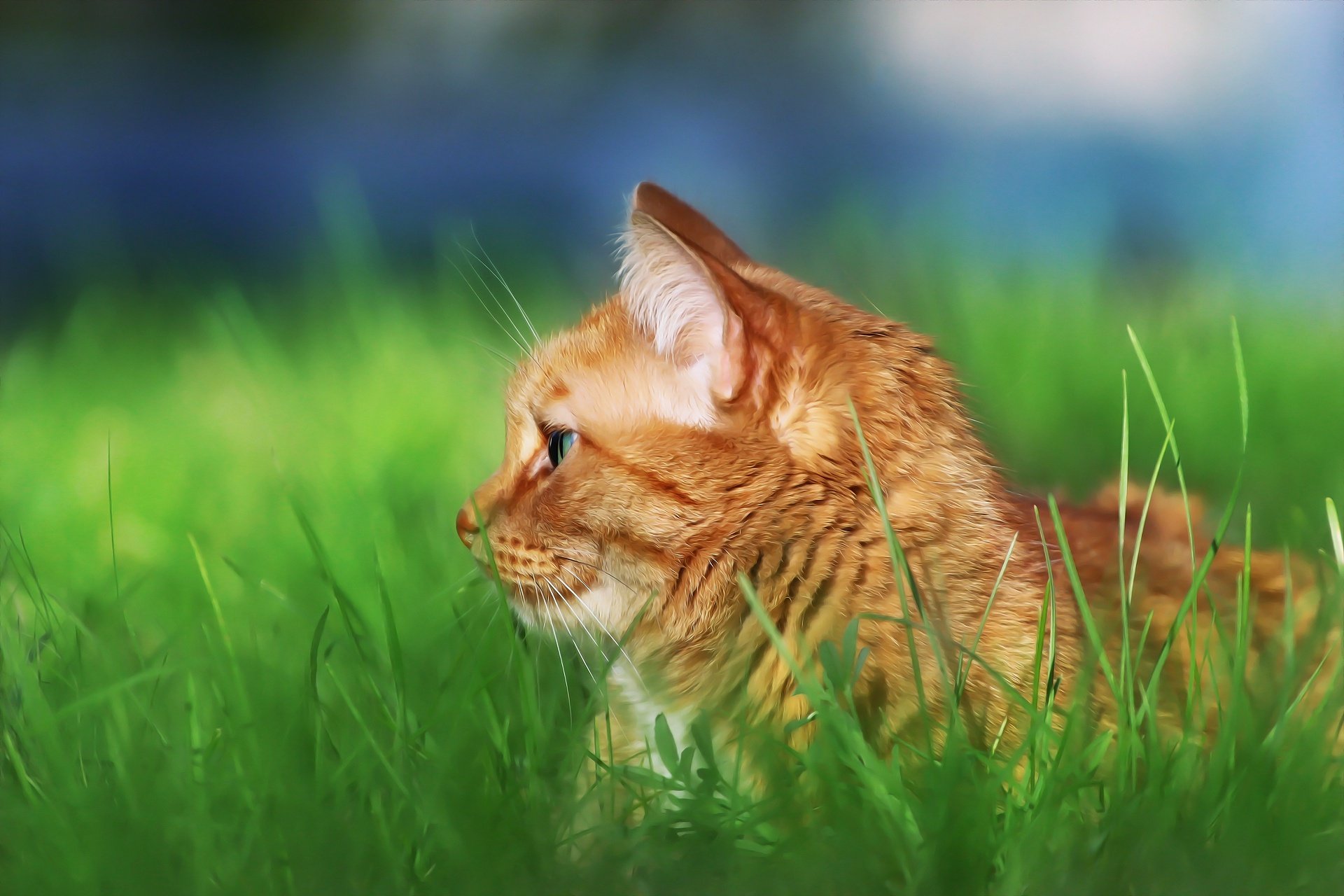 Рыжий котик в траве