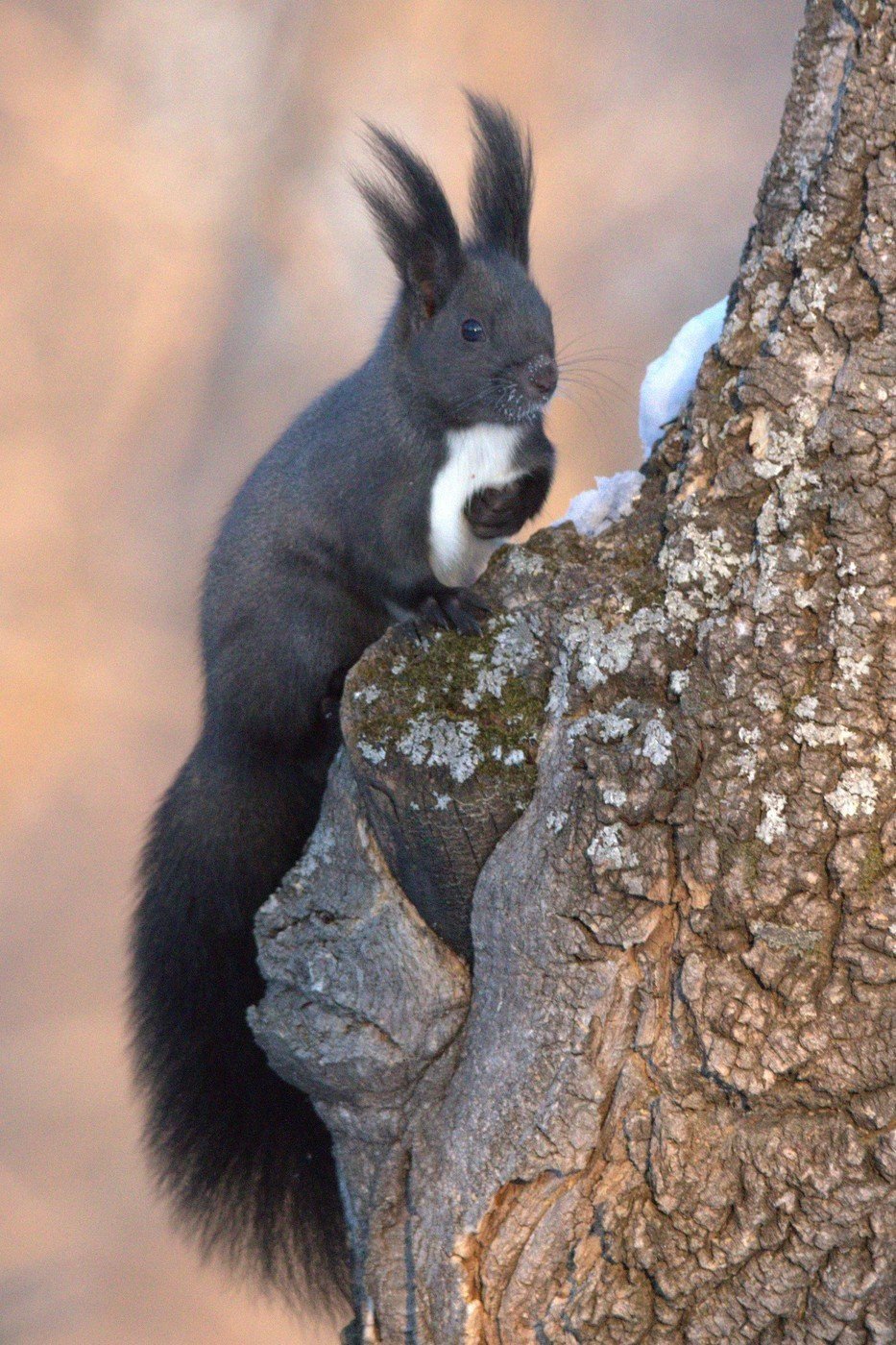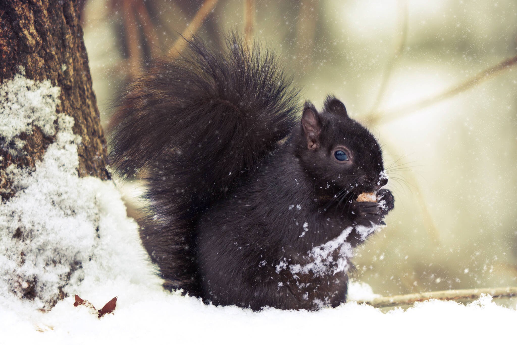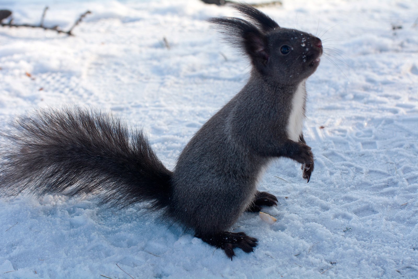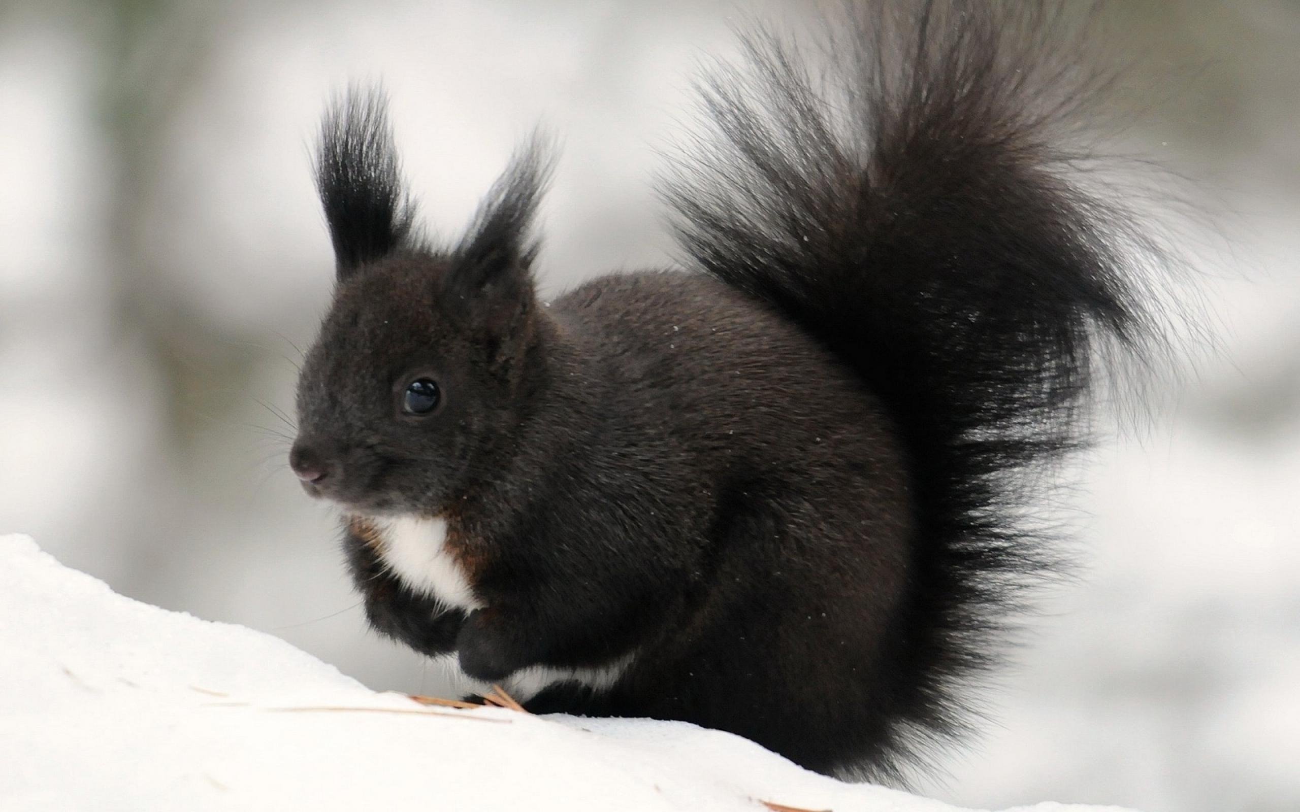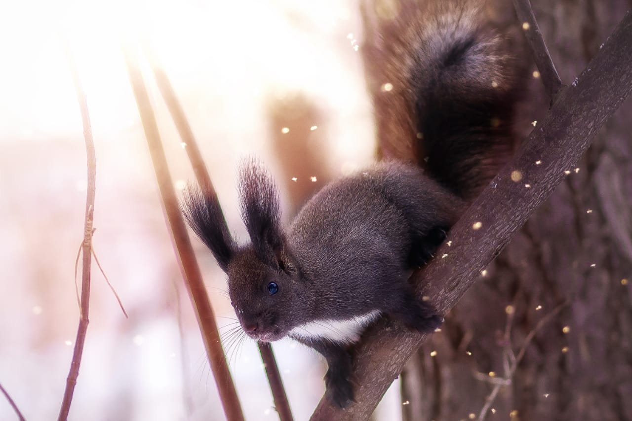 Чёрные белки зимой