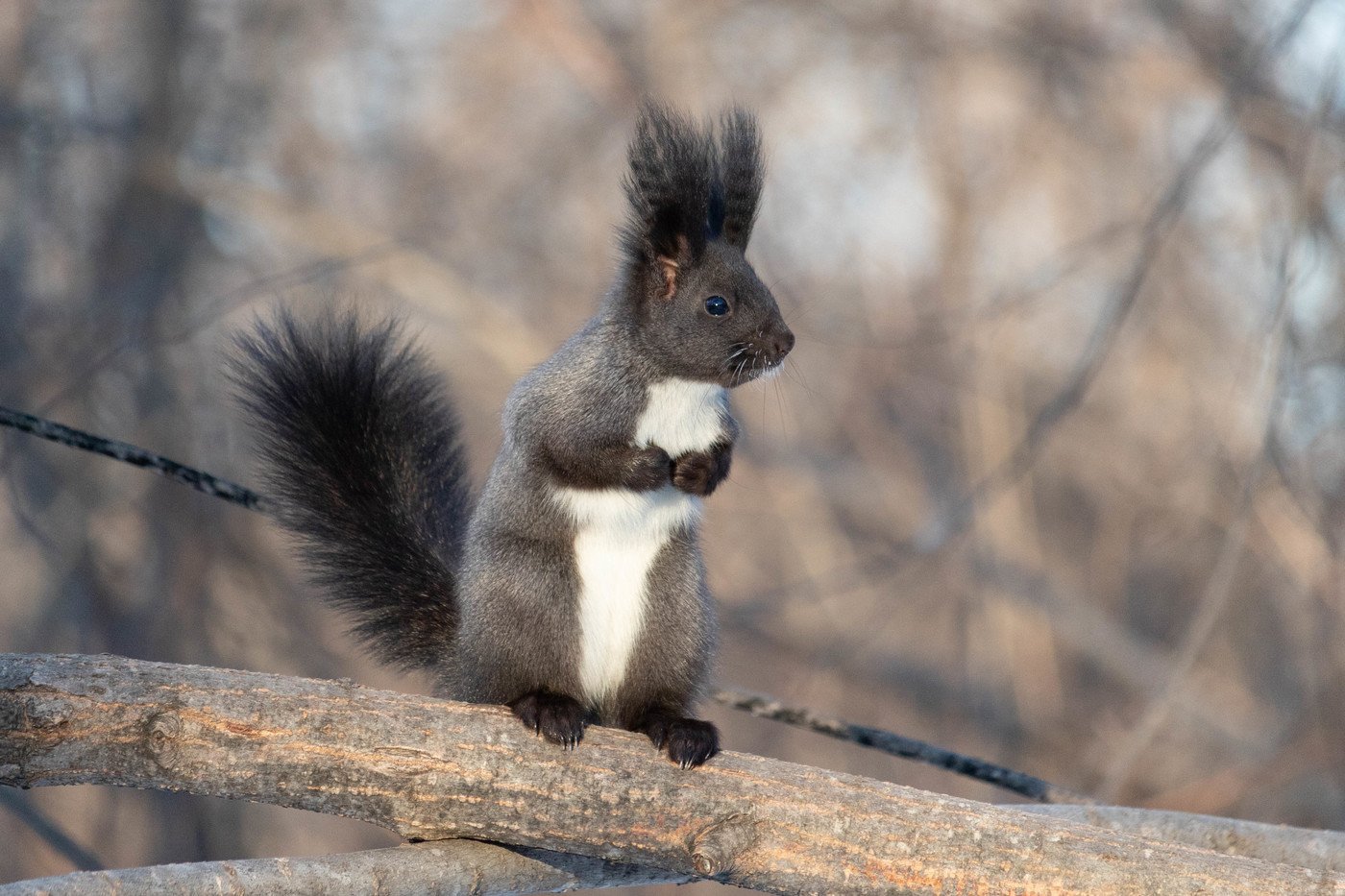 Чёрная белка с белой грудкой